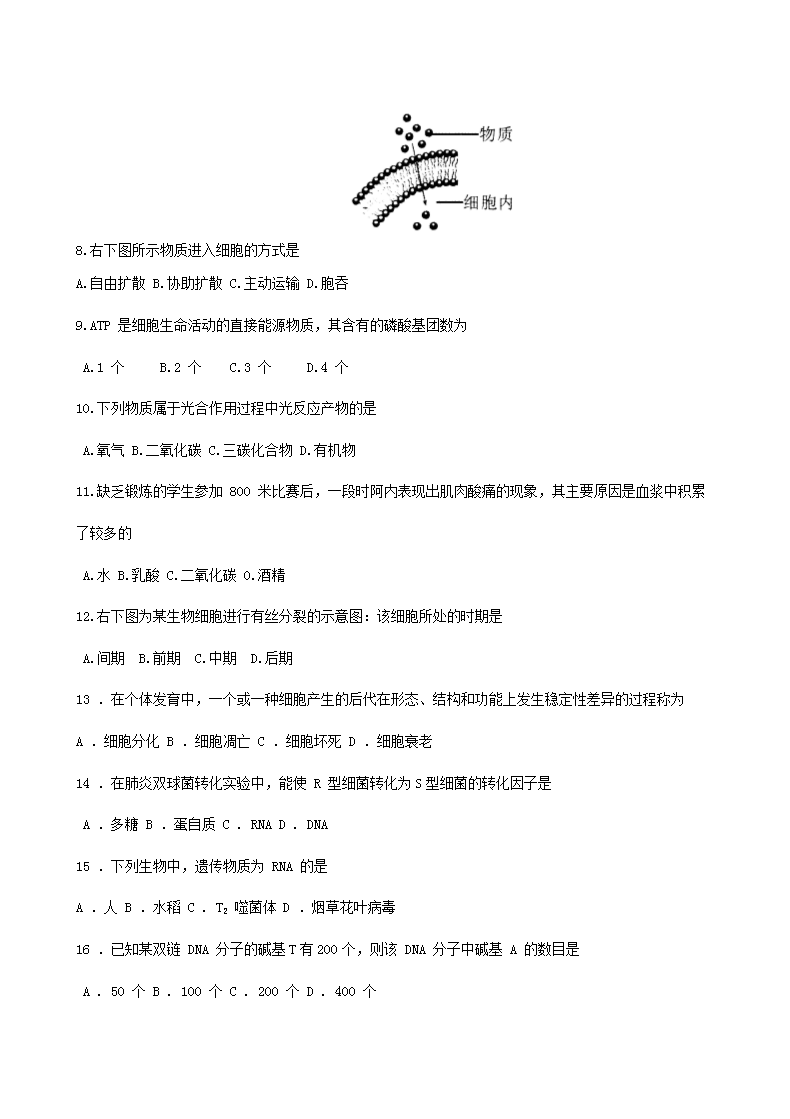 【文档名称】 2017年贵州普通高中会考生物真题(Word版).doc
