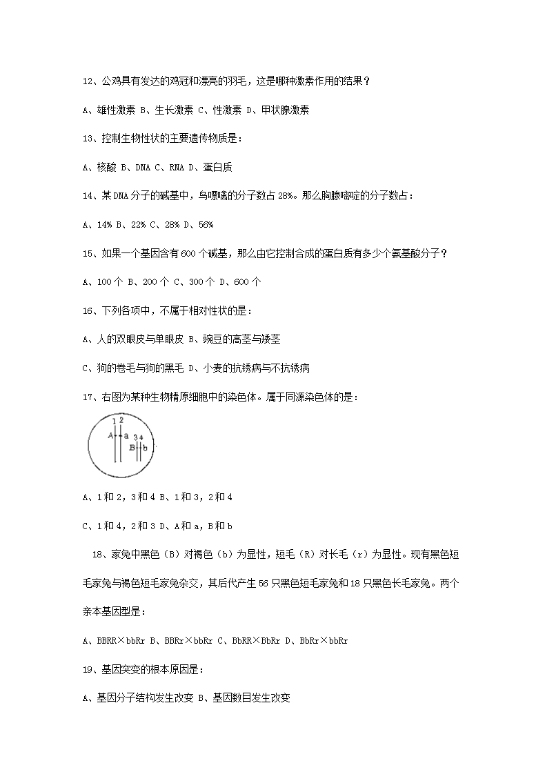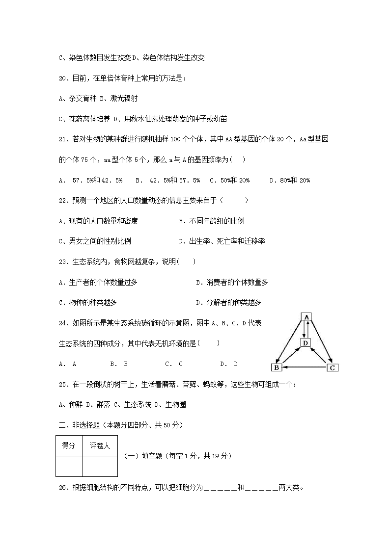 【文档名称】 2019年贵州普通高中会考生物真题及答案(Word版).doc