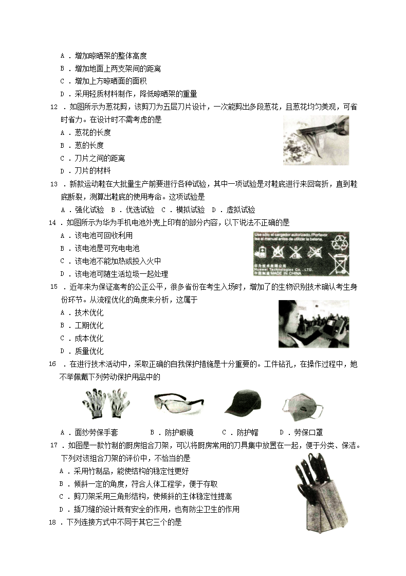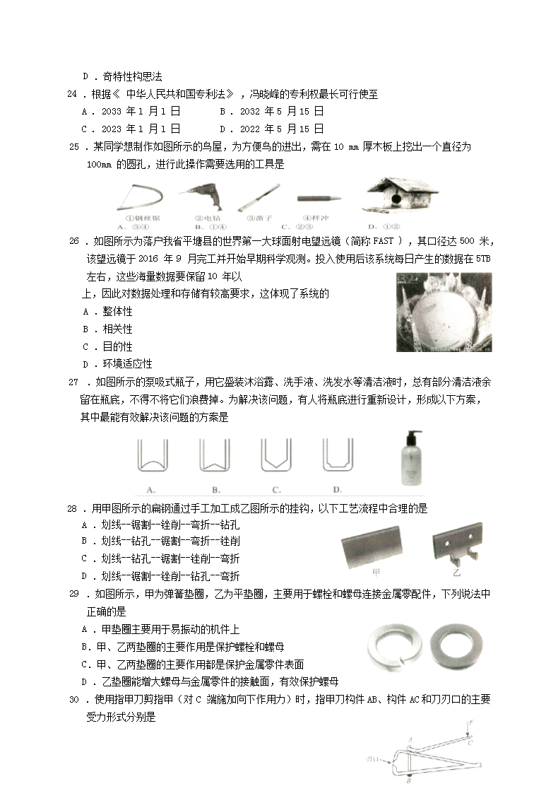 【文档名称】 2017年贵州普通高中会考通用技术真题(Word版).doc