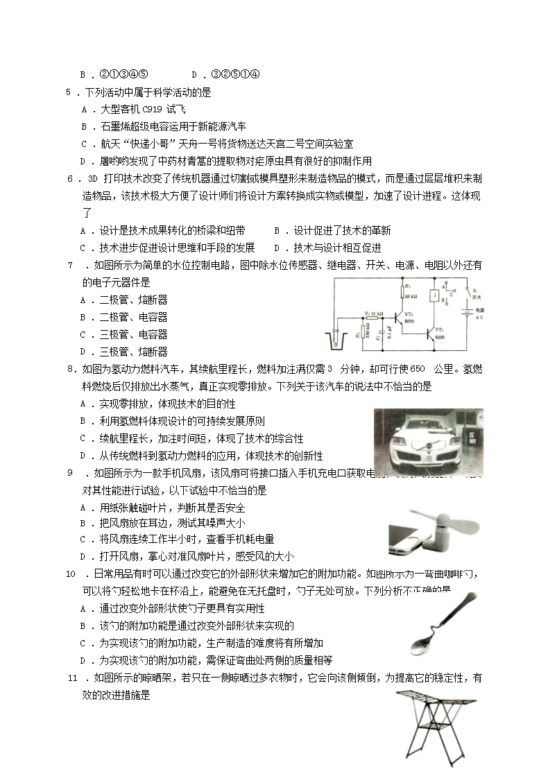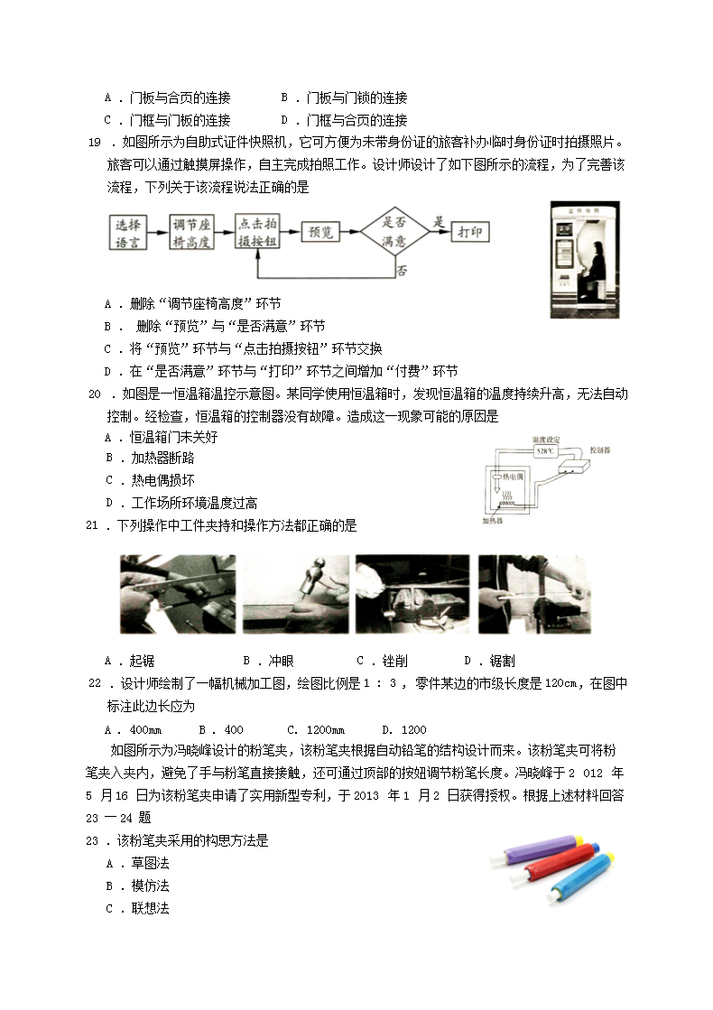 【文档预览】 无忧考网整理发布2017年贵州普通高中会考通用技术真题(Word版),前五页预览如下: