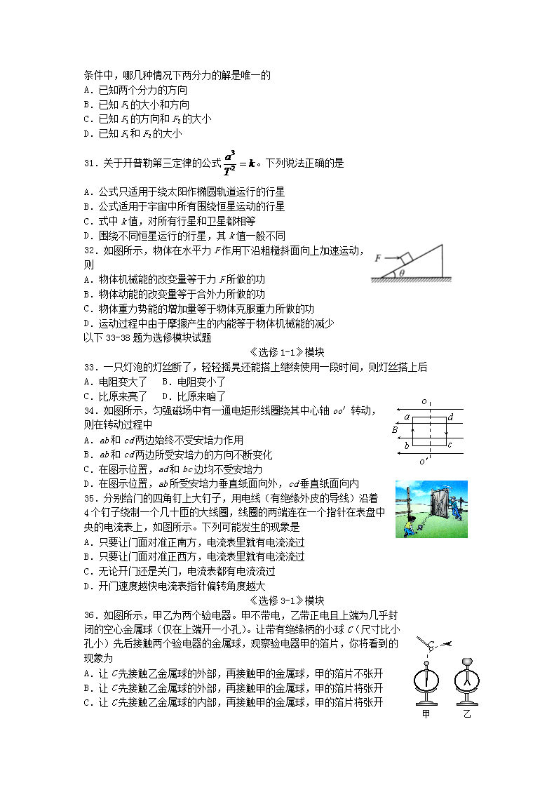【文档名称】 2013年河北普通高中会考物理真题及答案(Word版).doc