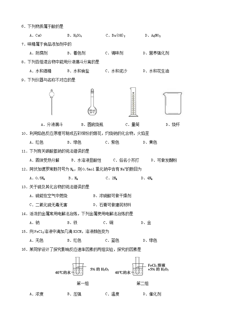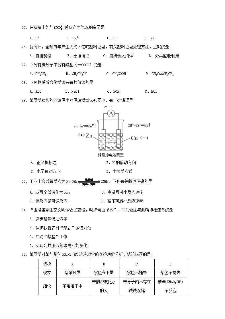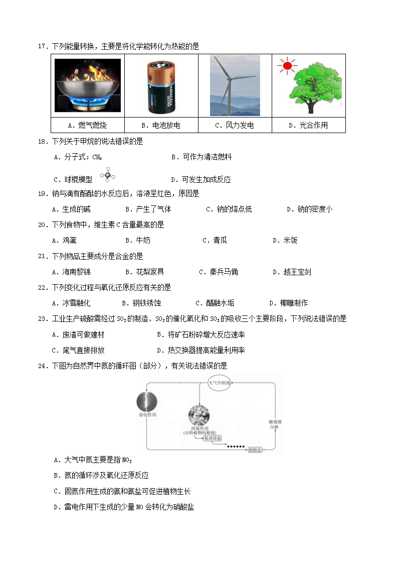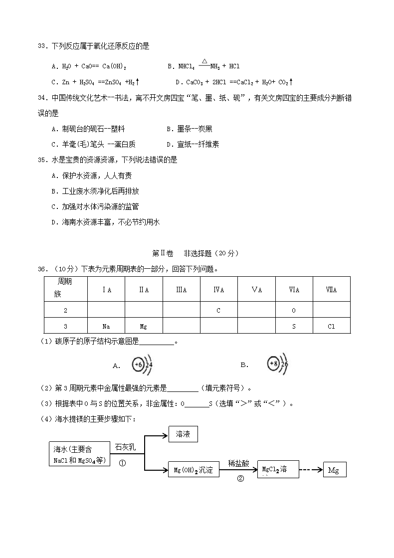 【文档名称】 2019年海南普通高中会考化学真题及答案(Word版).doc
