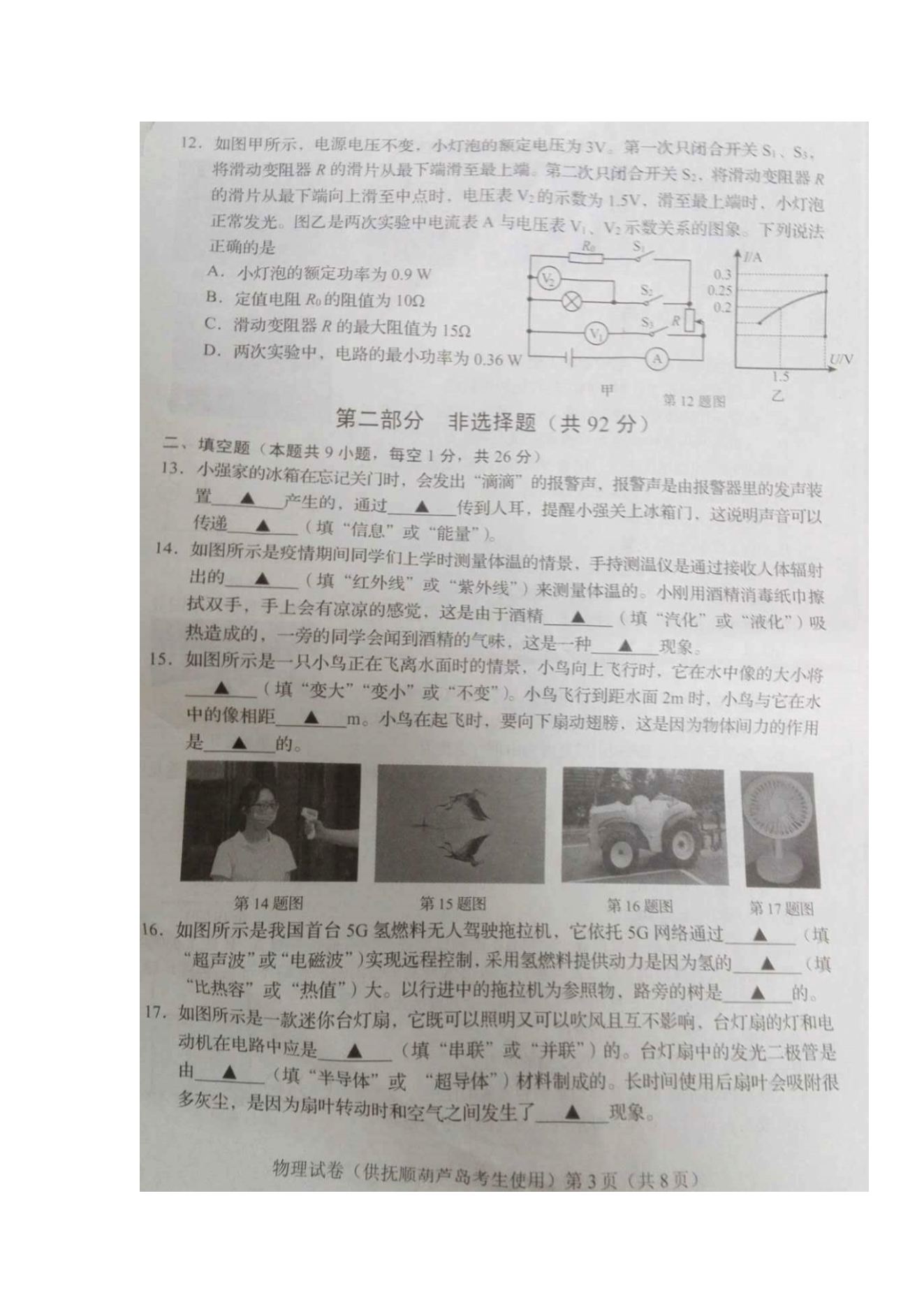 【文档预览】 无忧考网整理发布2020年辽宁抚顺中考物理真题及答案(图片版),前五页预览如下: