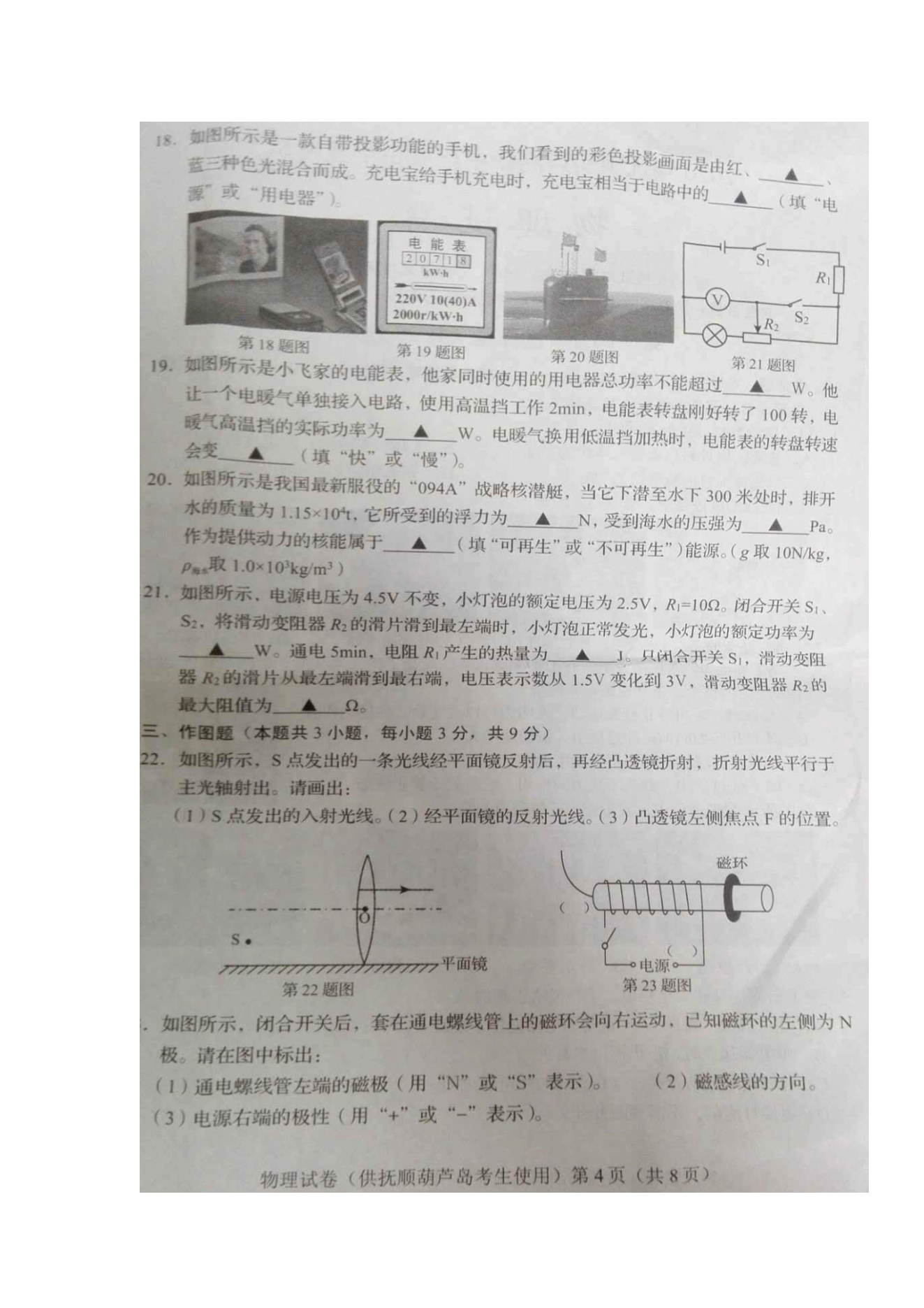 【文档名称】 2020年辽宁抚顺中考物理真题及答案(图片版).doc