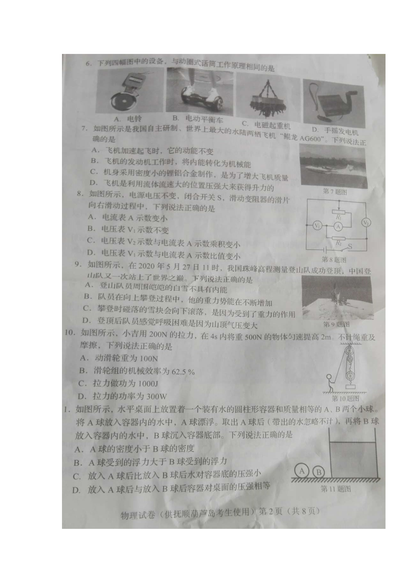 【文档预览】 无忧考网整理发布2020年辽宁葫芦岛中考物理真题及答案(图片版),前五页预览如下: