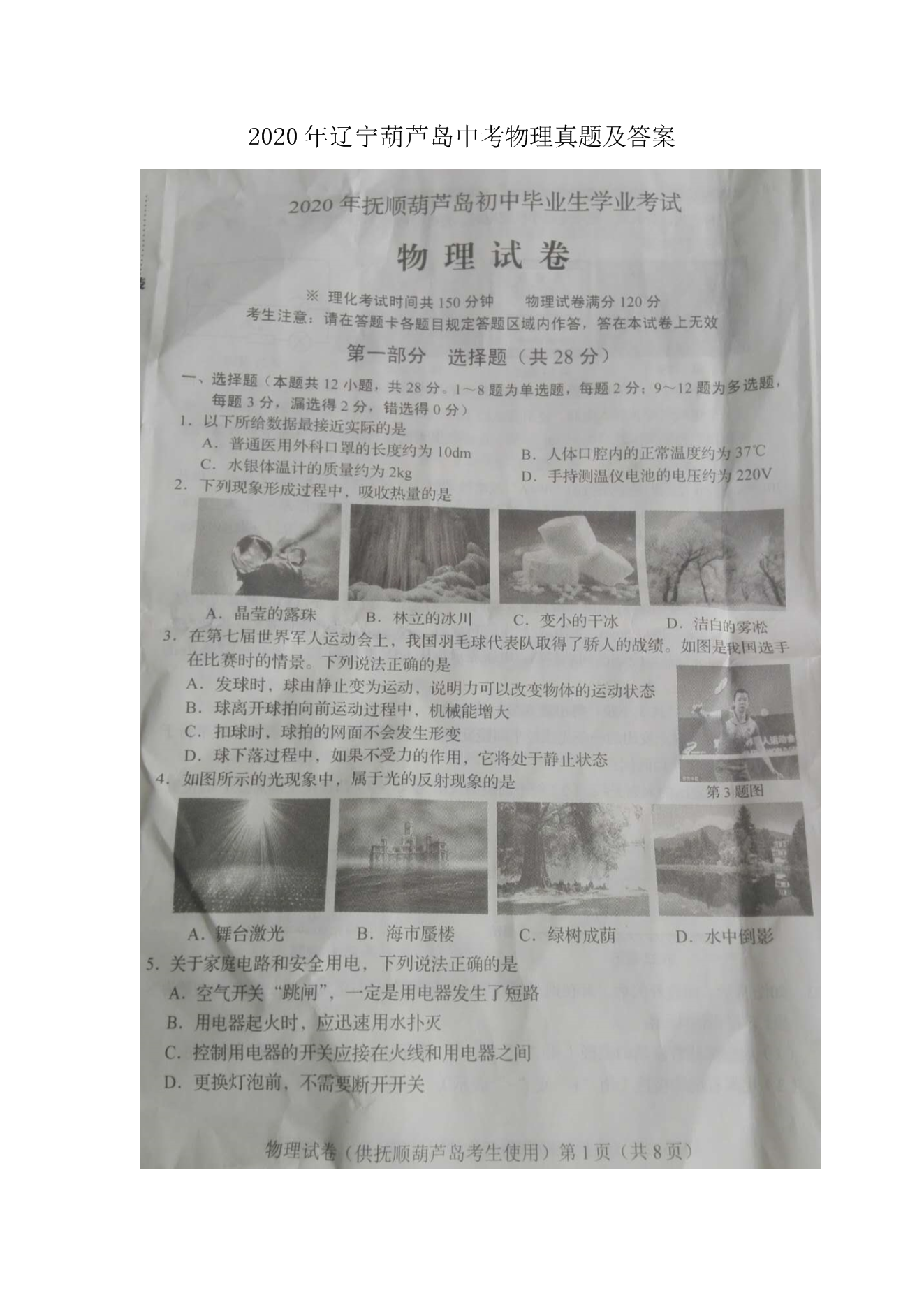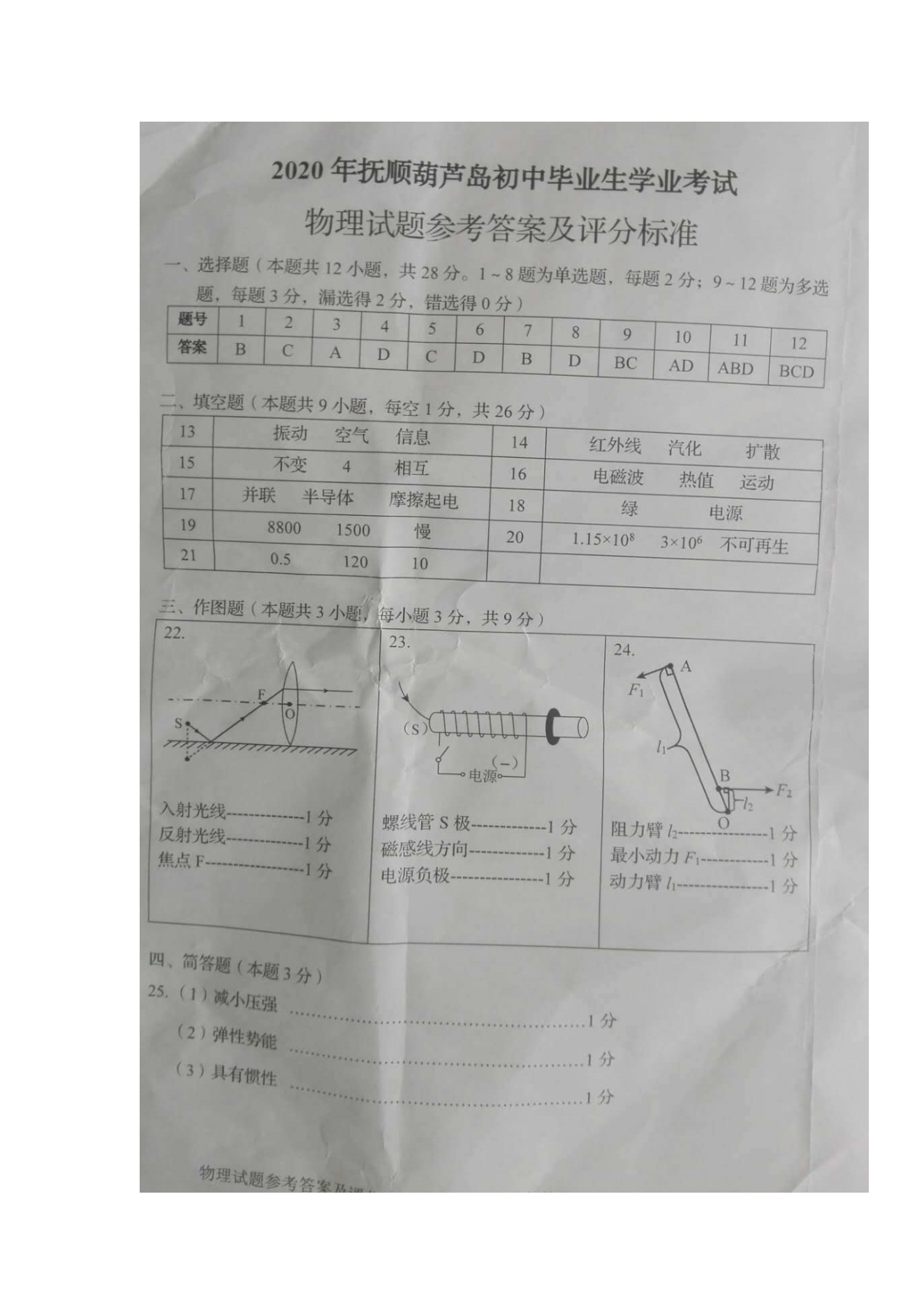 【文档名称】 2020年辽宁葫芦岛中考物理真题及答案(图片版).doc