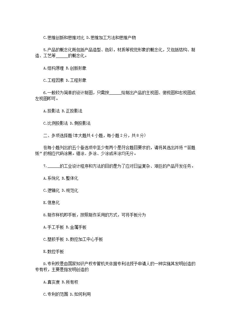 【文档名称】 2014年4月浙江省高等教育自学考试产品设计程序与方法试题(Word版).doc