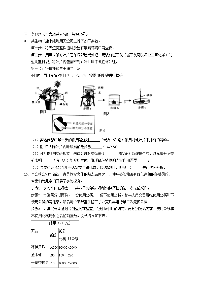 【文档名称】 2020年上海长宁中考生物试题及答案(Word版).doc