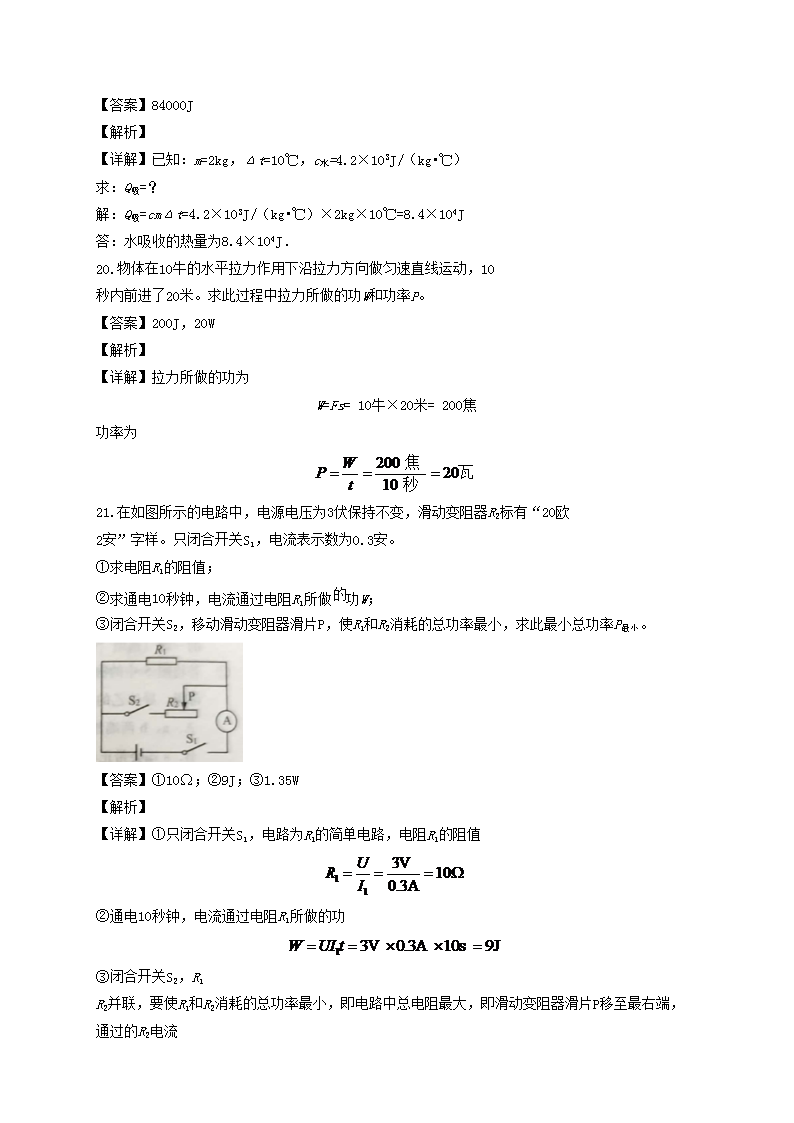 【文档名称】 2020年上海青浦中考物理试题及答案(Word版).doc