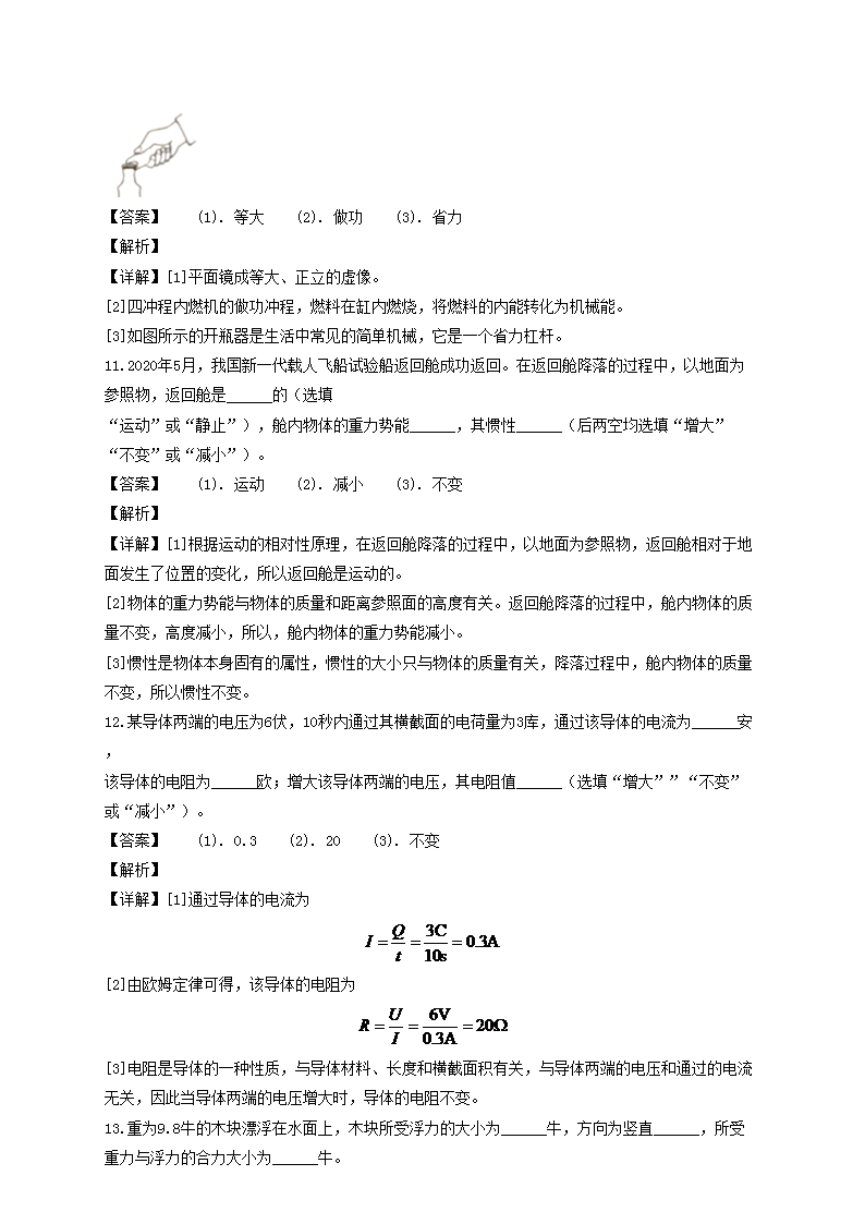 【文档名称】 2020年上海杨浦中考物理试题及答案(Word版).doc