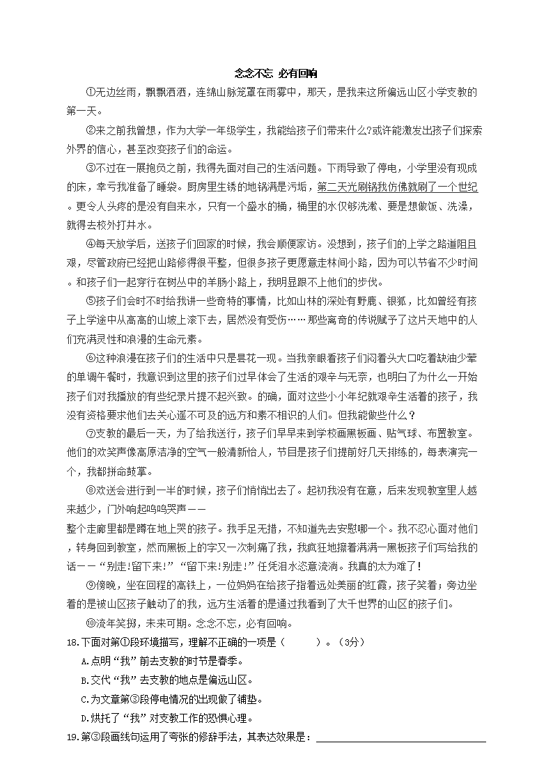 【文档预览】 无忧考网整理发布2020年上海静安中考语文试题及答案(Word版),前五页预览如下: