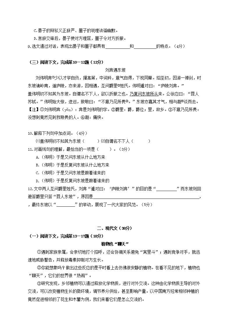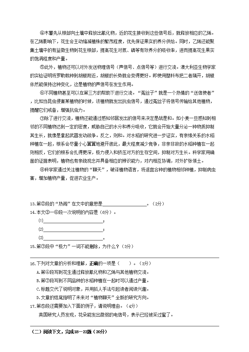 【文档名称】 2020年上海长宁中考语文试题及答案(Word版).doc