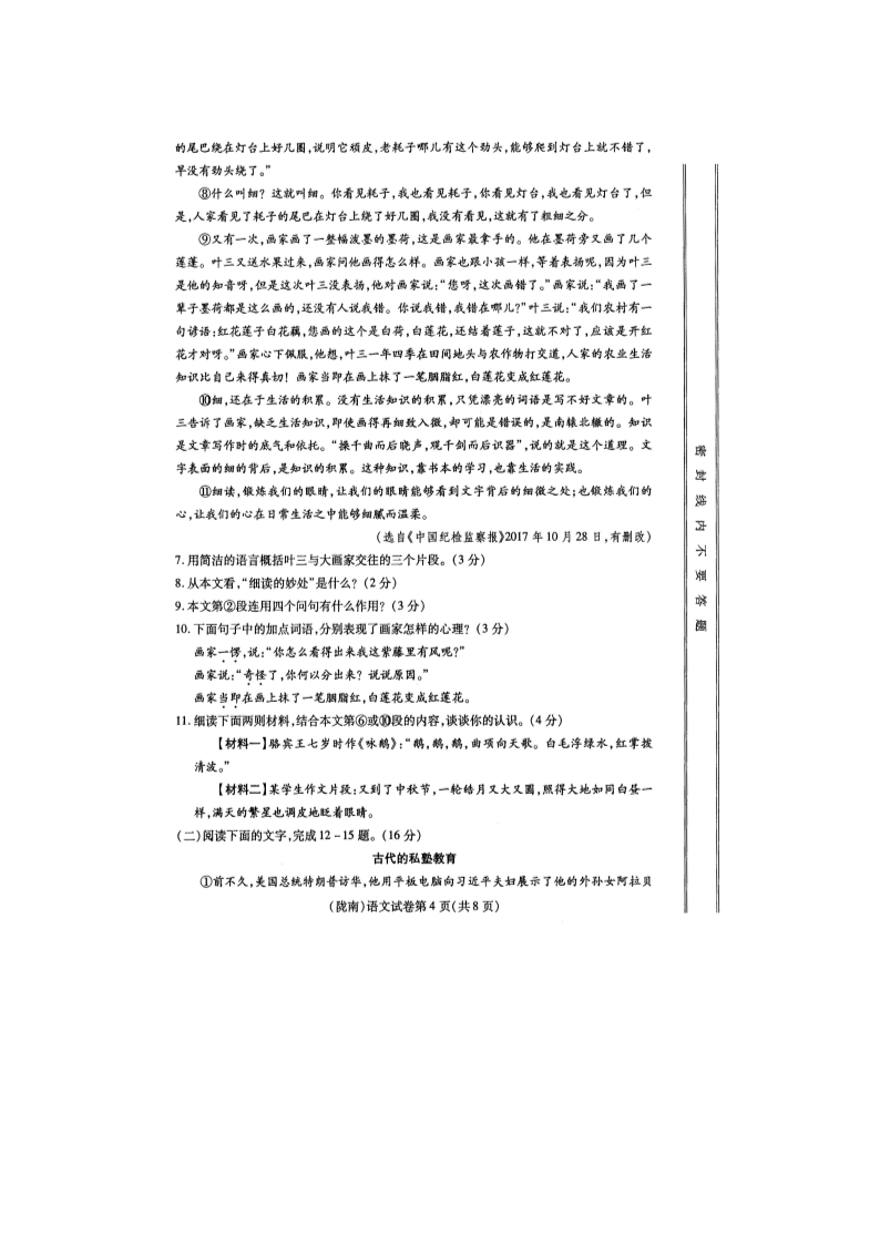 【文档名称】 2018年甘肃省陇南市中考语文试题(图片版).doc
