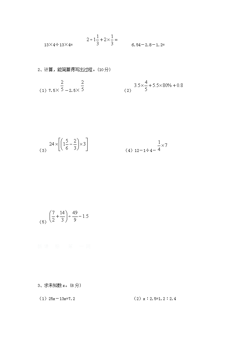 【文档名称】 2014年上海小升初数学考试真题(Word版).doc
