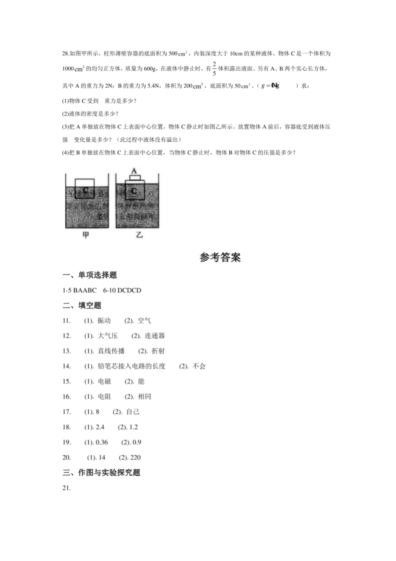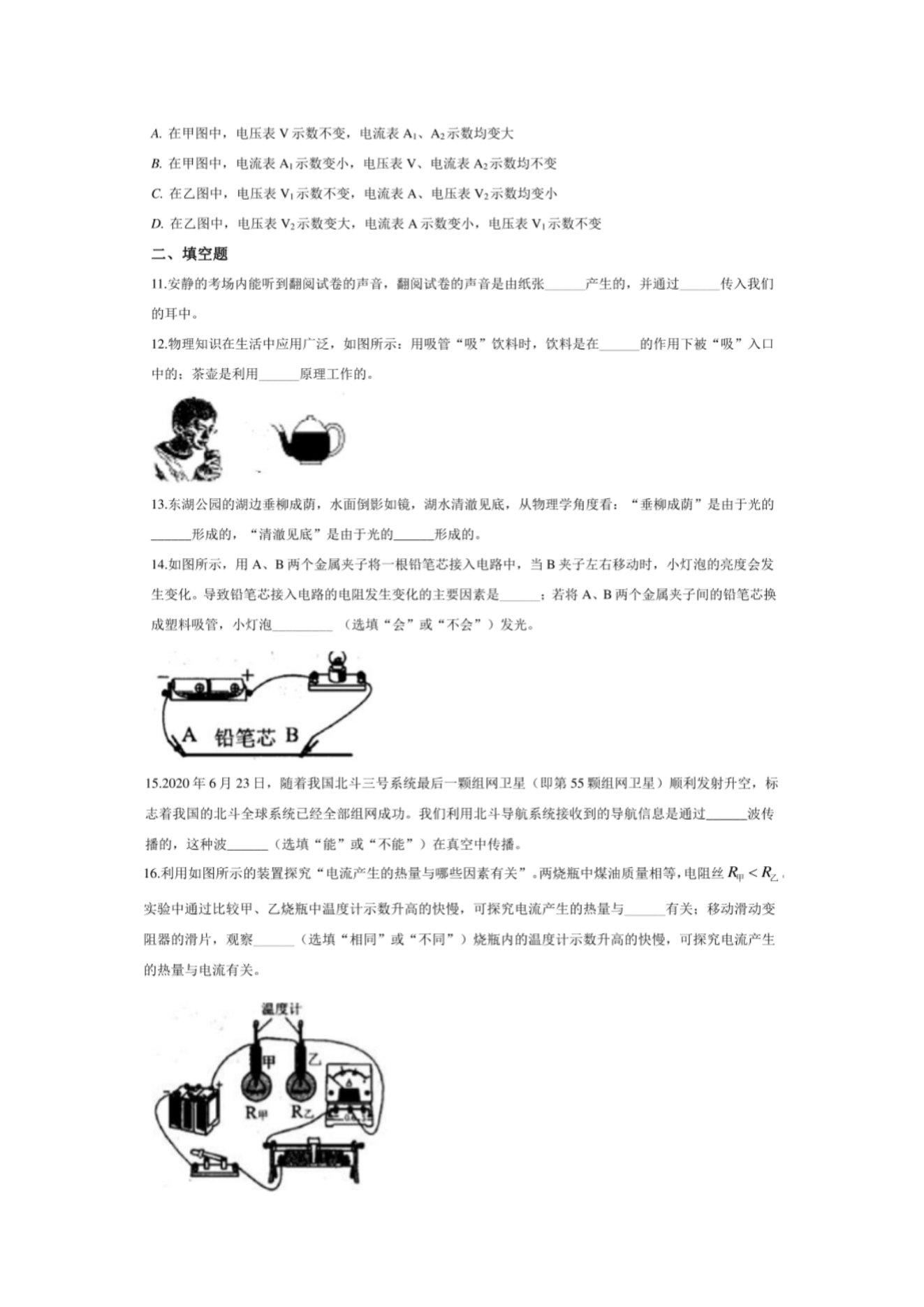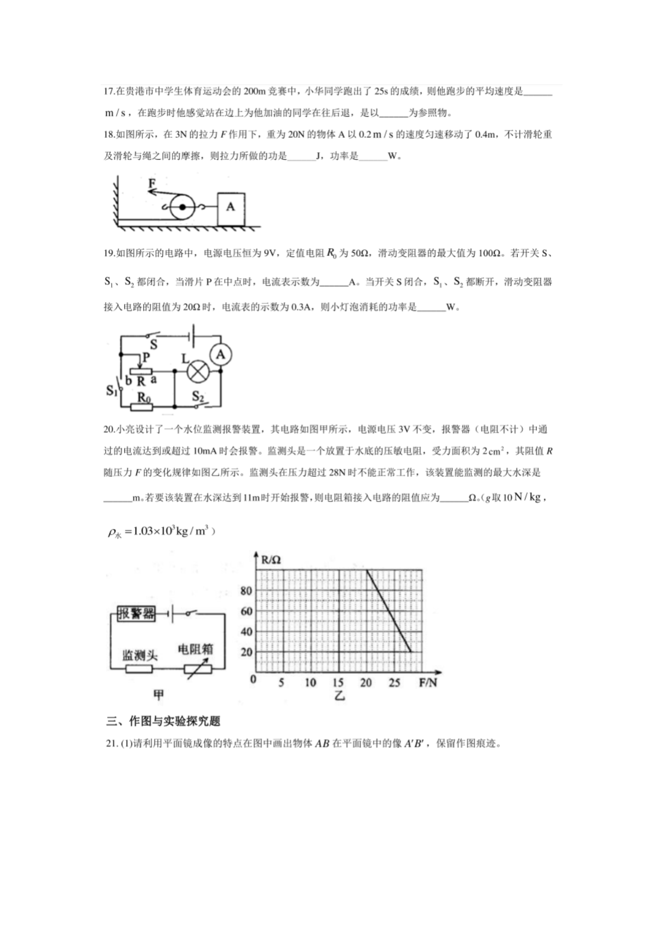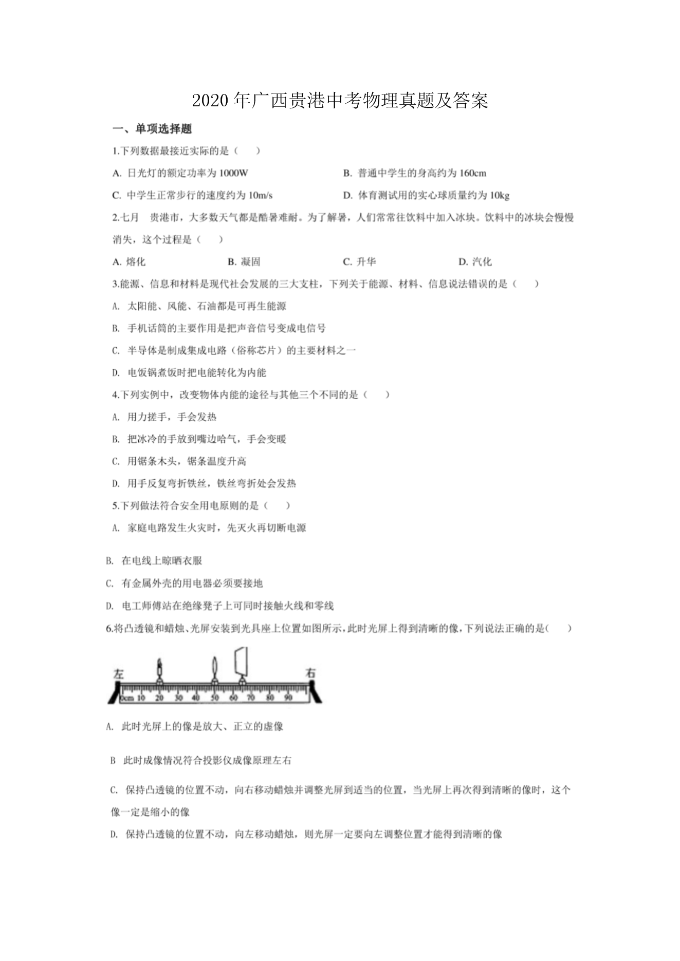 【文档名称】 2020年广西贵港中考物理真题及答案(图片版).doc