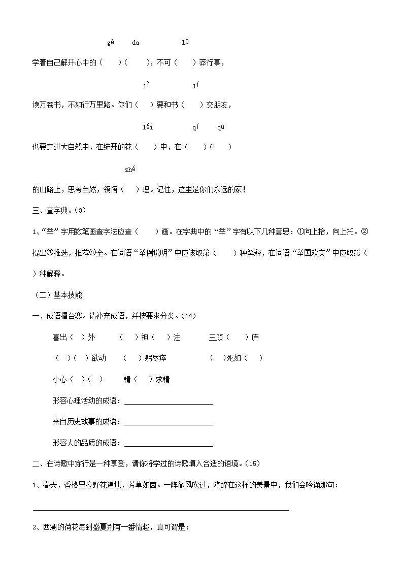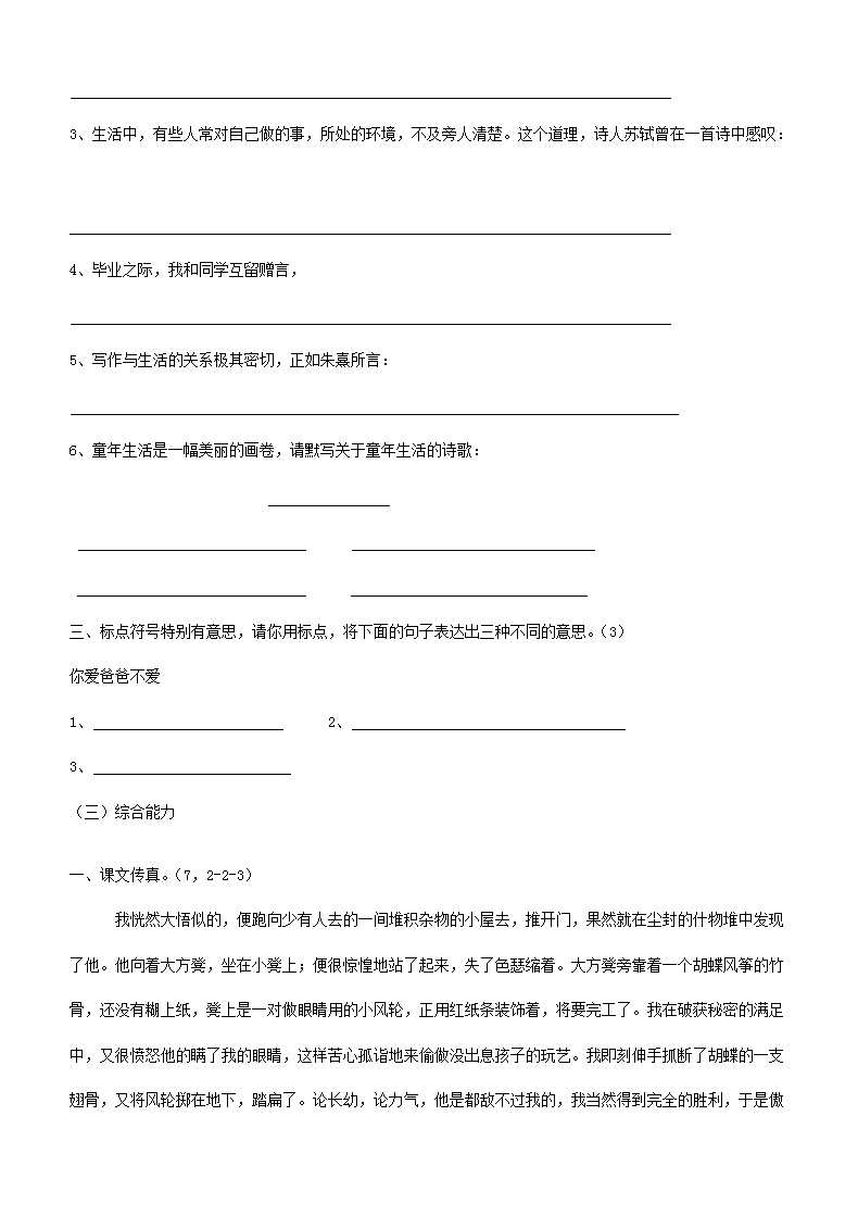 【文档名称】 2015年河北石家庄小升初语文真题(Word版).doc
