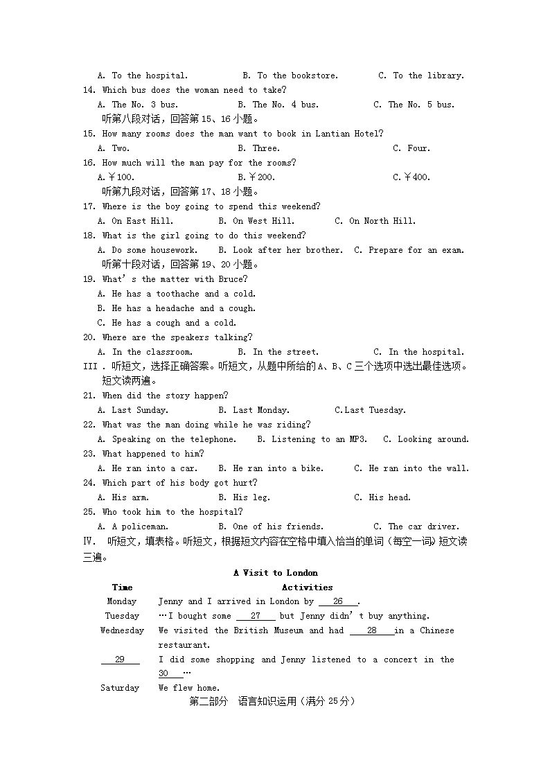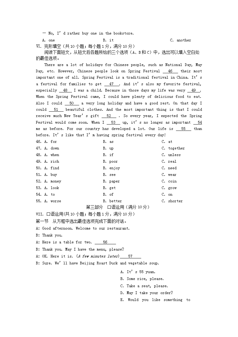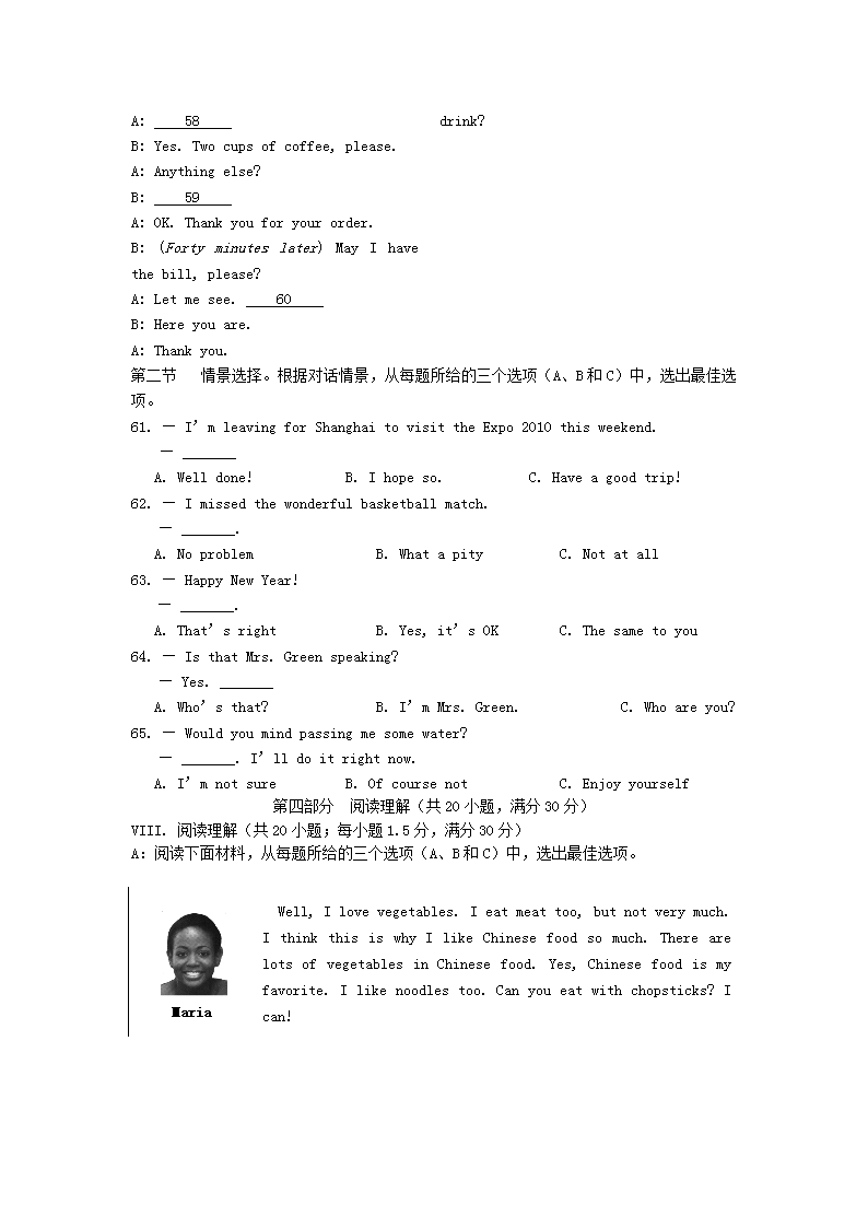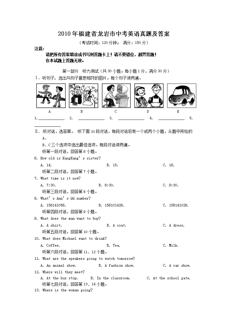 【文档预览】 无忧考网整理发布2010年福建省龙岩市中考英语真题及答案(Word版),前五页预览如下: