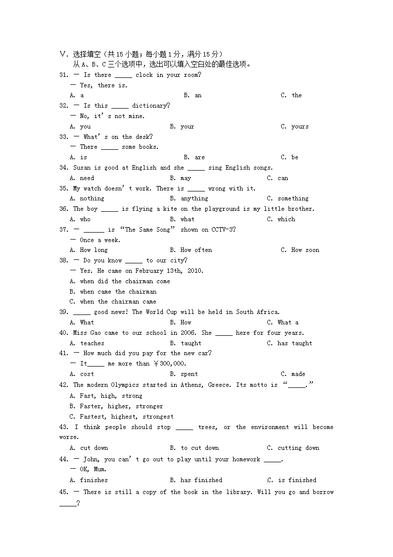 【文档名称】 2010年福建省龙岩市中考英语真题及答案(Word版).doc
