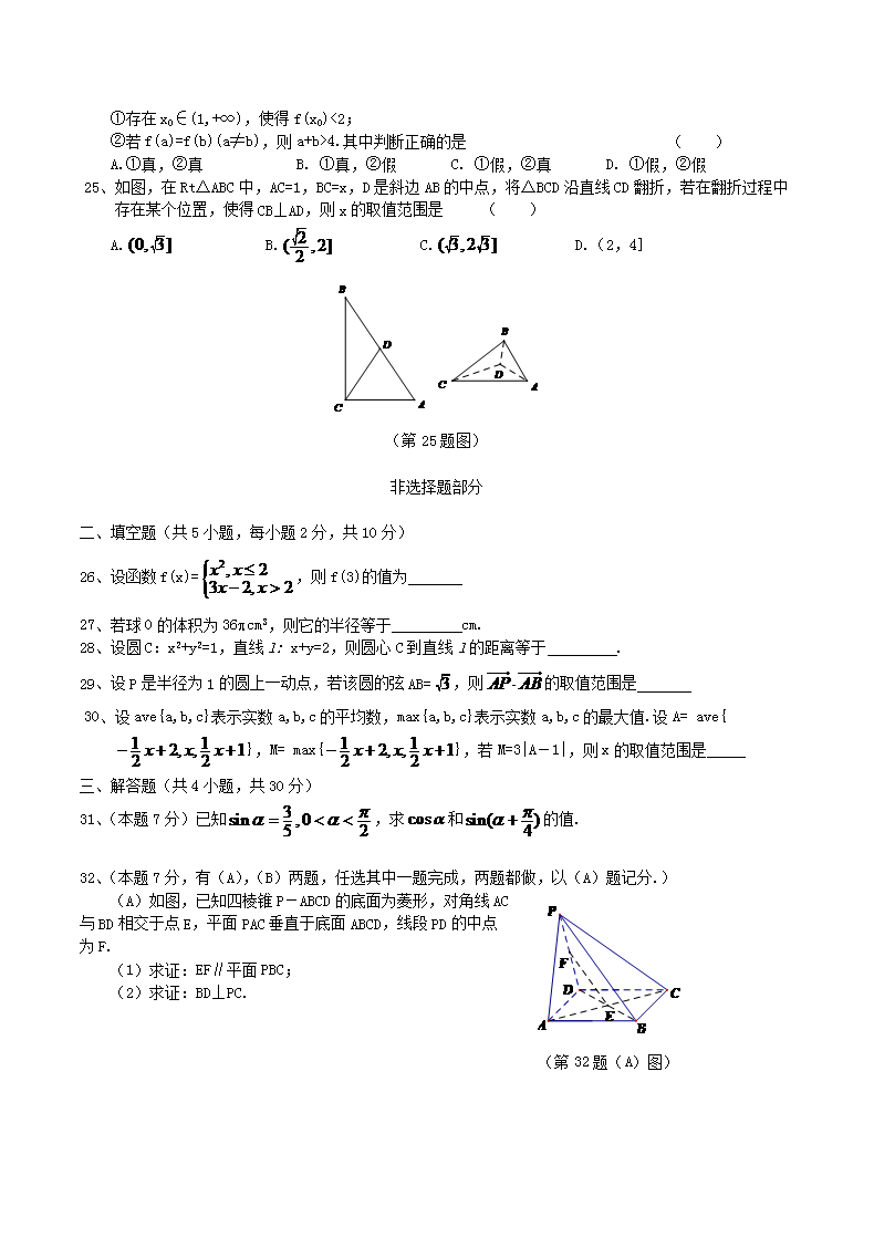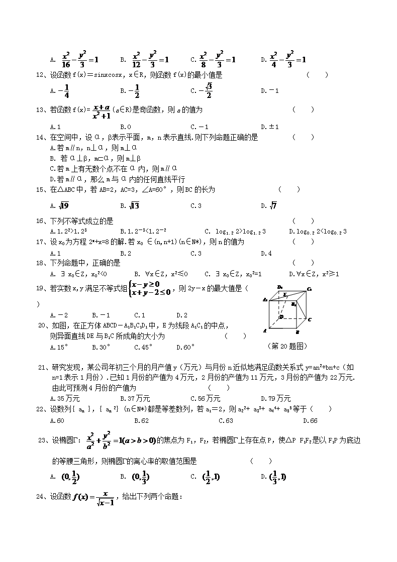 【文档名称】 2018年浙江普通高中会考数学真题及答案(Word版).doc