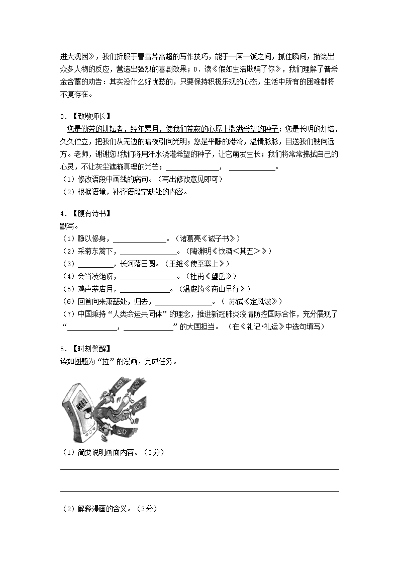 【文档名称】 2020年江苏扬州中考语文真题及答案(Word版).doc