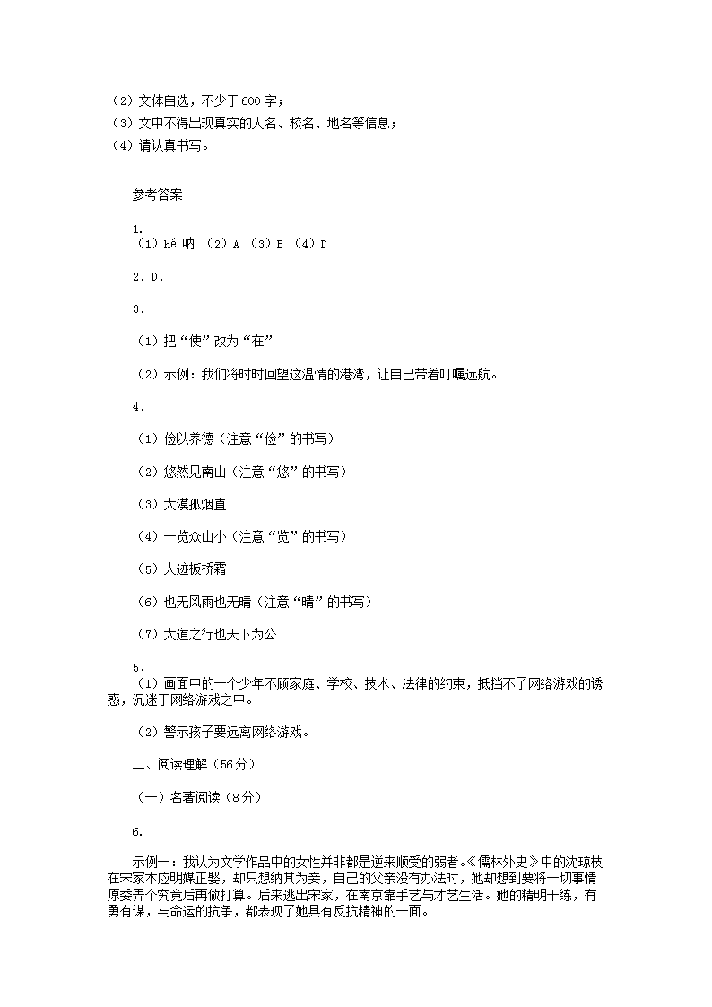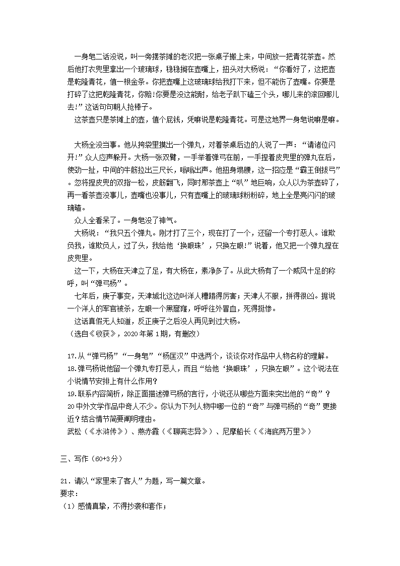【文档预览】 无忧考网整理发布2020年江苏扬州中考语文真题及答案(Word版),前五页预览如下: