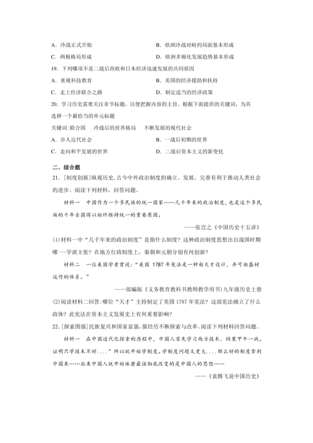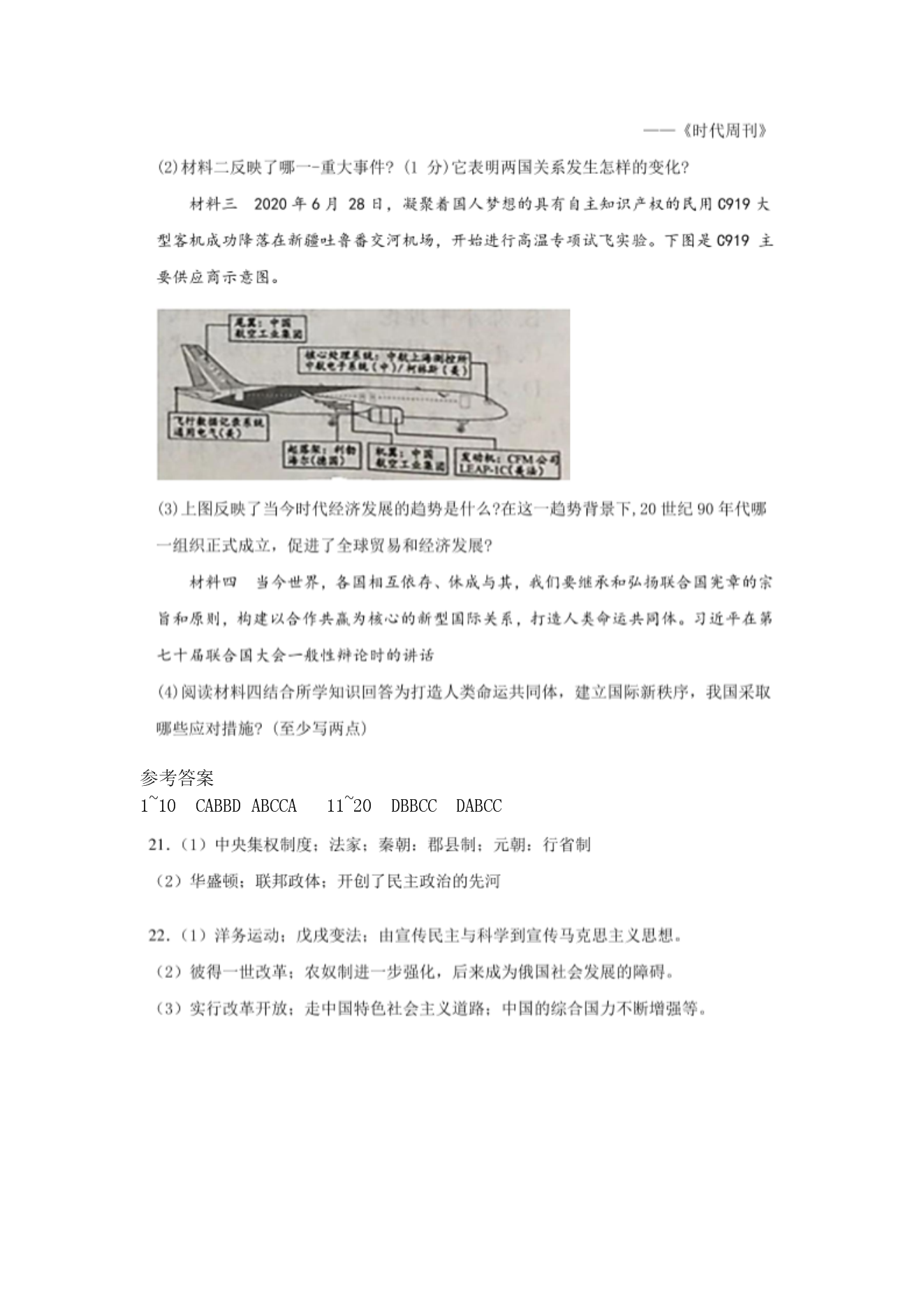 【文档名称】 2020年江苏宿迁中考历史真题及答案(图片版).doc