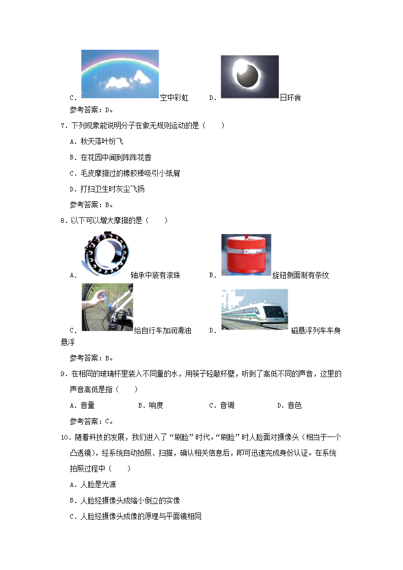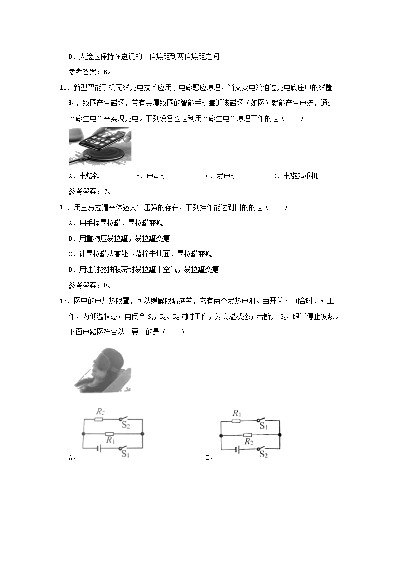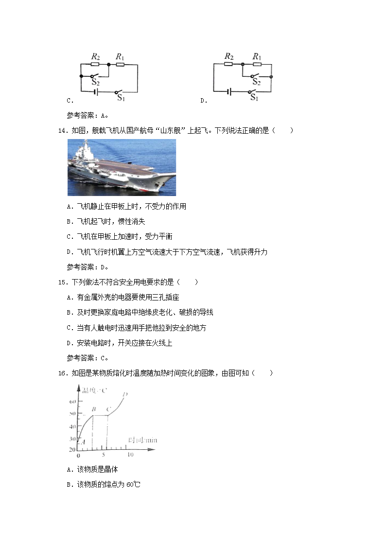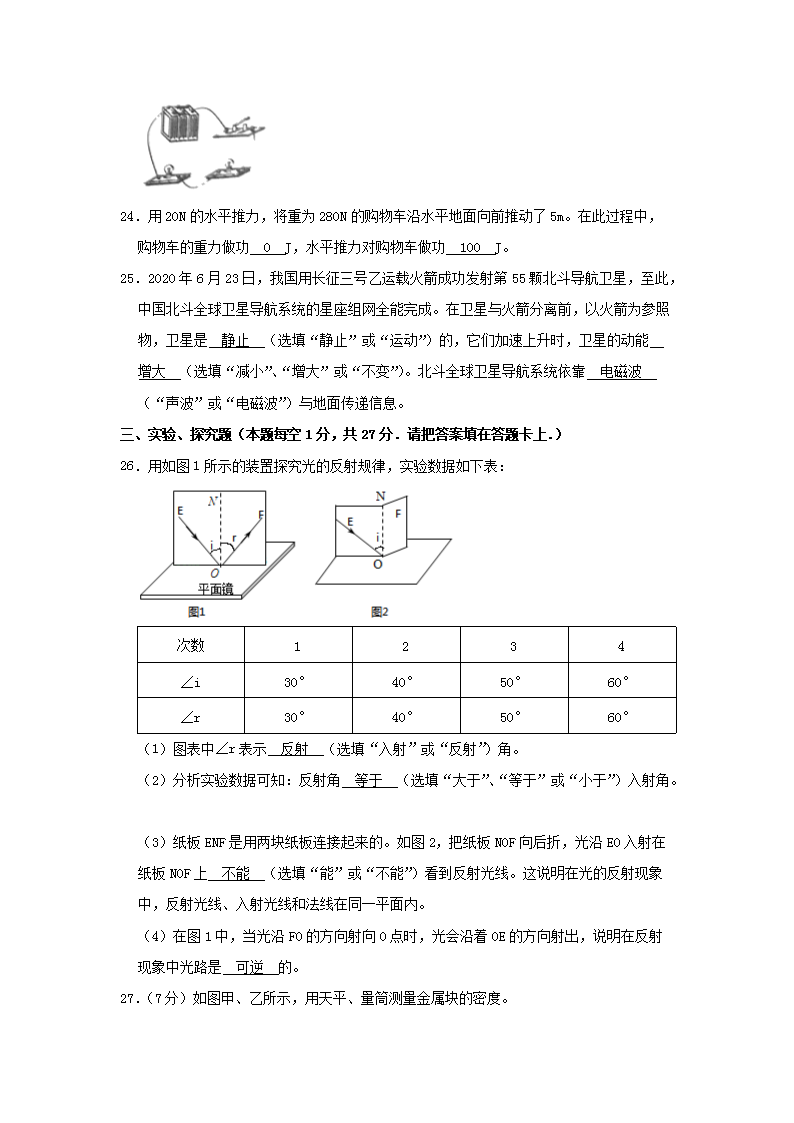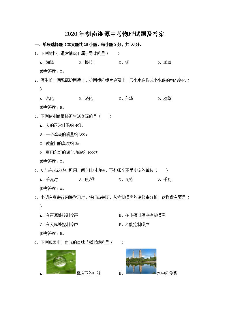 【文档名称】 2020年湖南湘潭中考物理试题及答案(Word版).doc