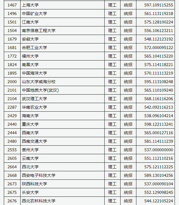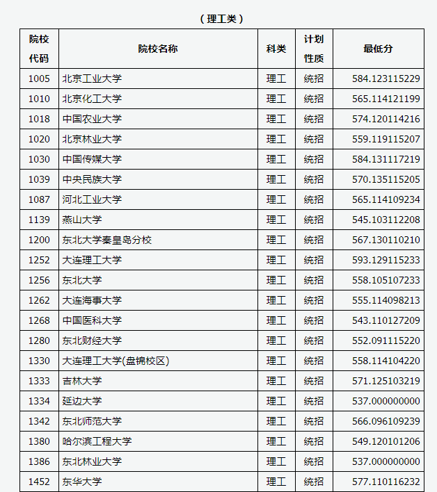 2020年山西省普通高校招生第一批本科A1类院校投档线