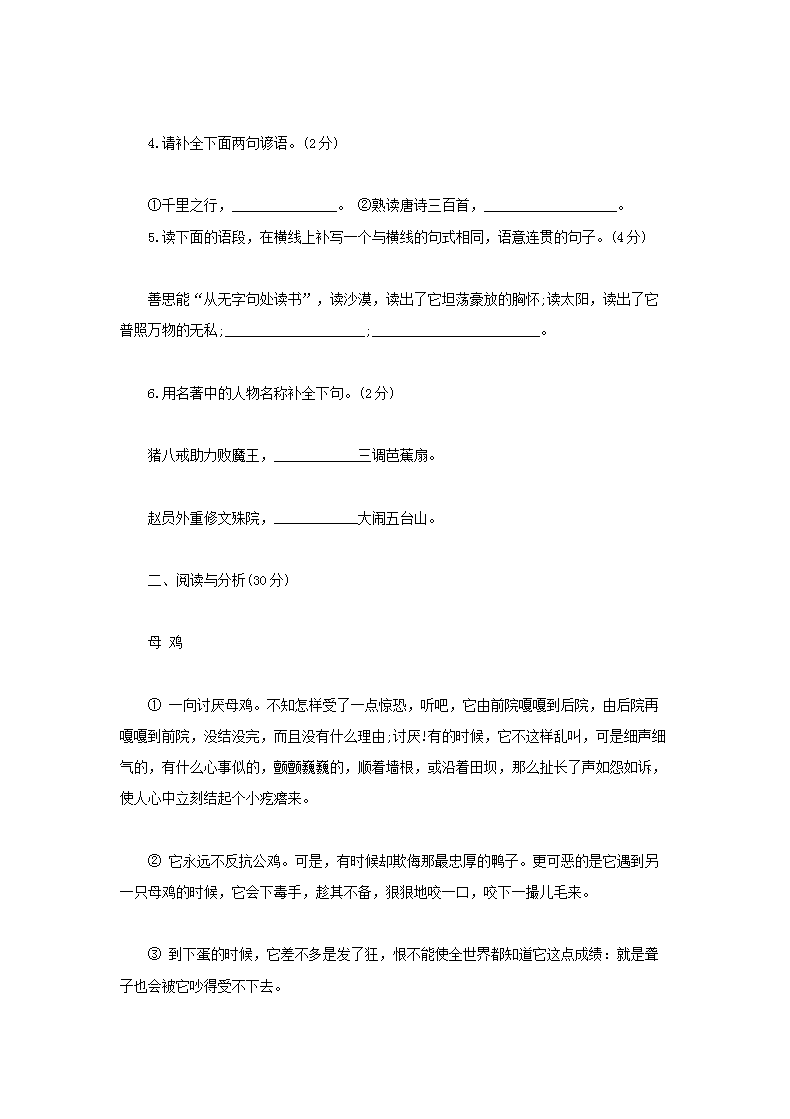 【文档预览】 无忧考网整理发布2016年内蒙古呼和浩特小升初语文真题(Word版),前五页预览如下: