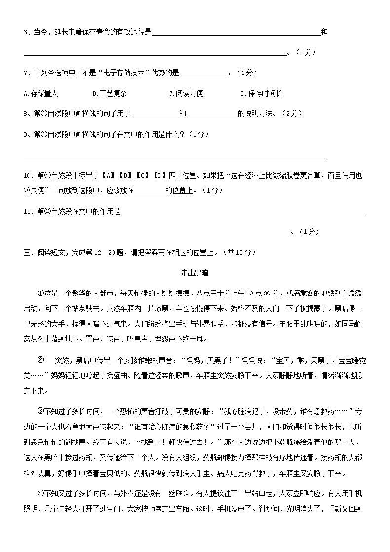 【文档名称】 2015年北京小升初语文考试真题(Word版).doc