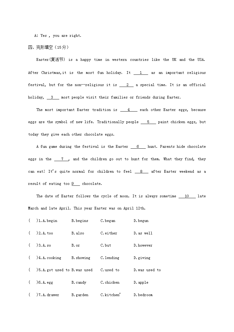 【文档名称】 2019年重庆小升初英语真题及答案(Word版).doc