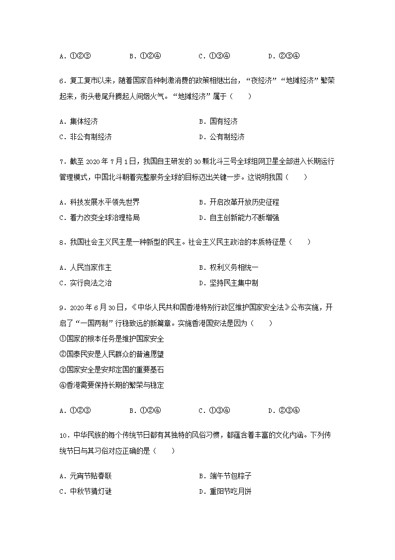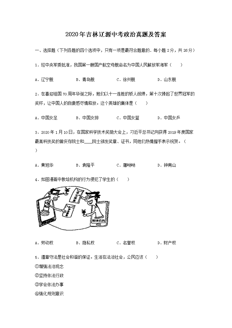 【文档名称】 2020年吉林辽源中考政治真题及答案(Word版).doc