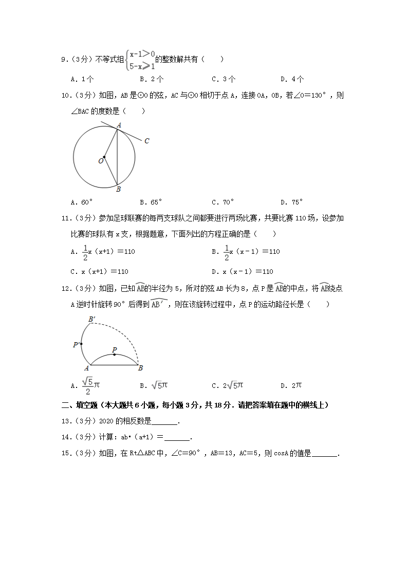 【文档名称】 2020年广西桂林中考数学真题及答案(Word版).doc
