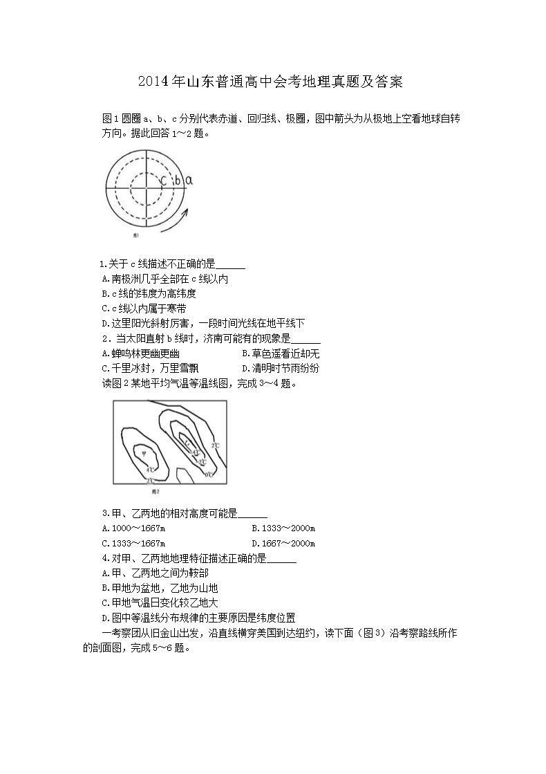 【文档名称】 2014年山东普通高中会考地理真题及答案(Word版).doc