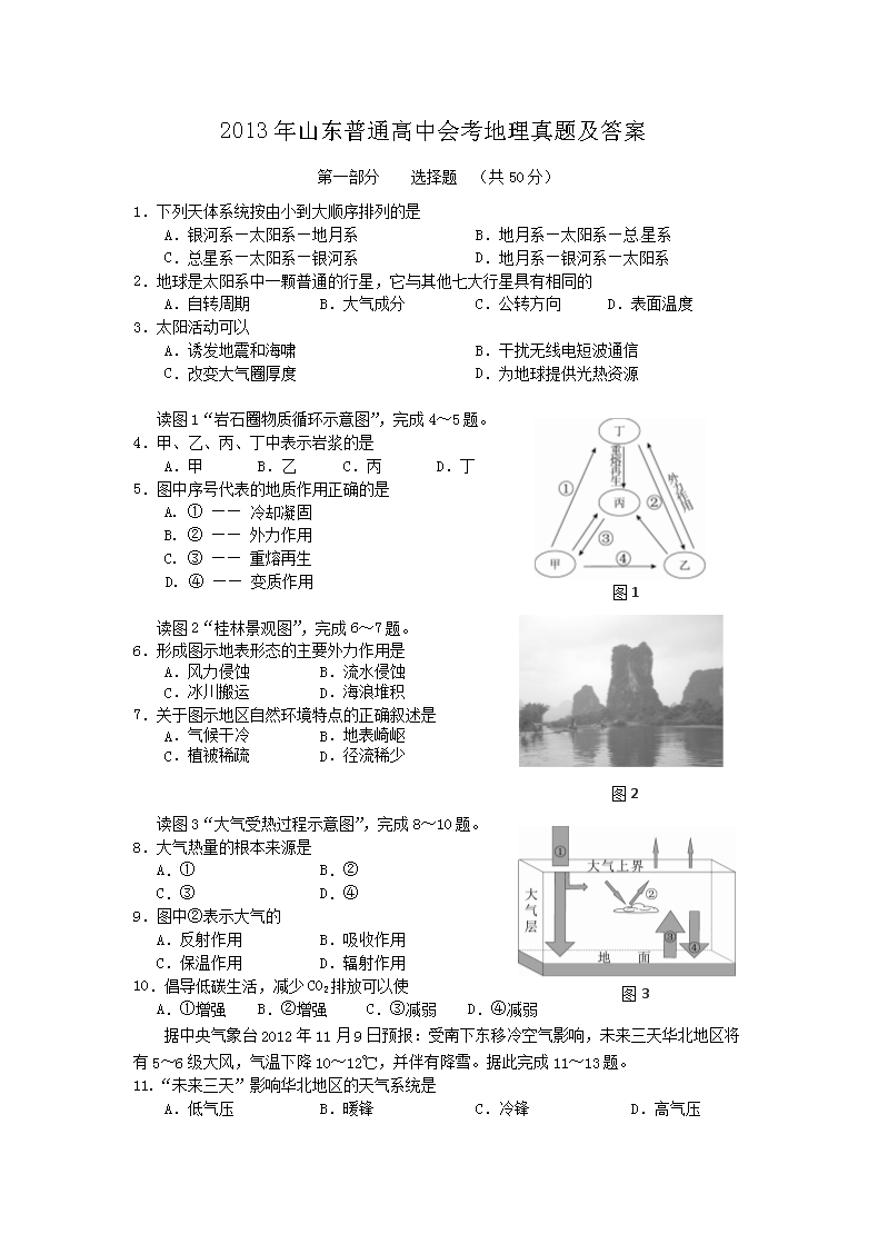 【文档名称】 2013年山东普通高中会考地理真题及答案(Word版).doc