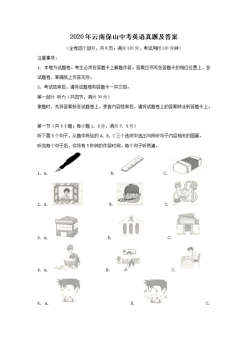 【文档预览】 无忧考网整理发布2020年云南保山中考英语真题及答案(Word版),前五页预览如下: