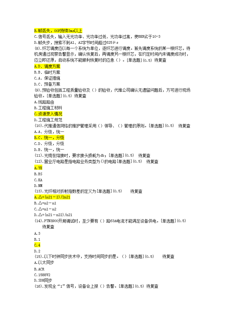 【文档名称】 中国移动传输线路L考试试题及参考答案(Word版).doc