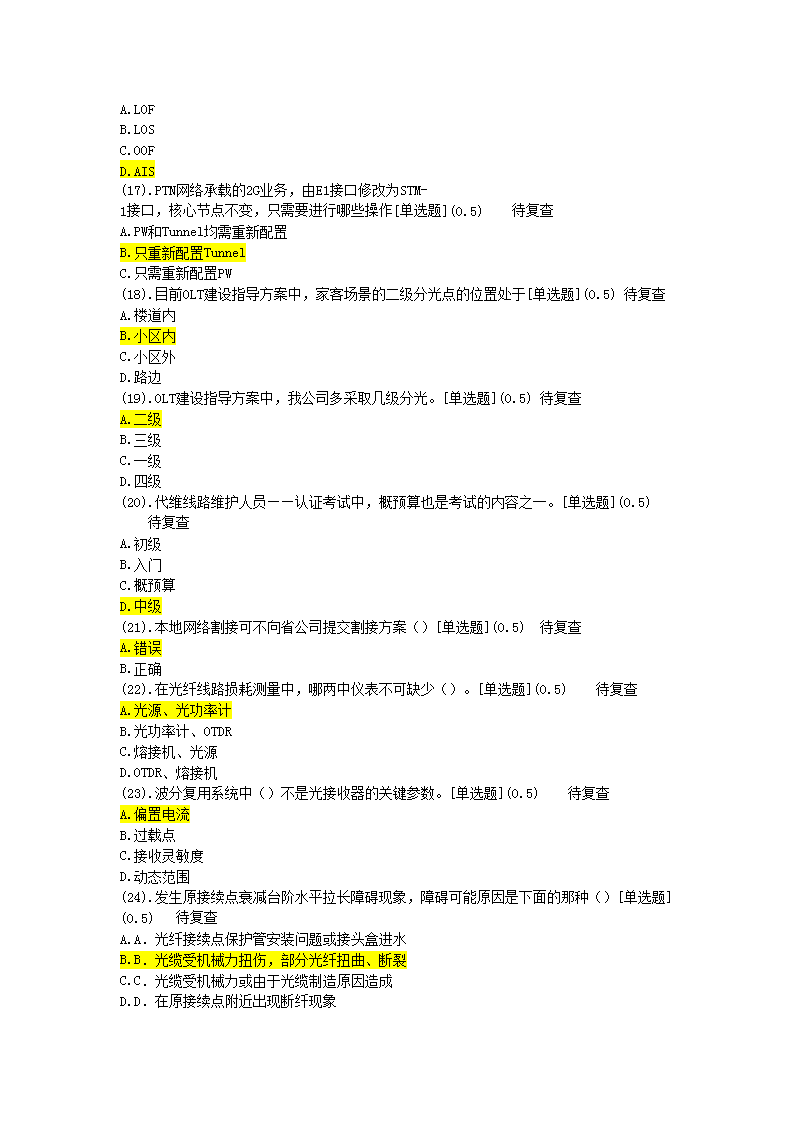 【文档预览】 无忧考网整理发布中国移动传输线路L考试试题及参考答案(Word版),前五页预览如下: