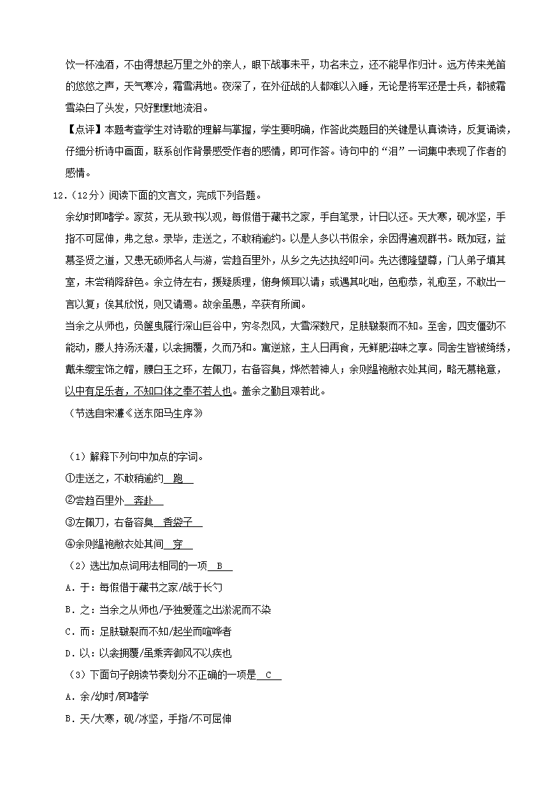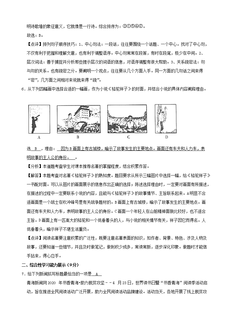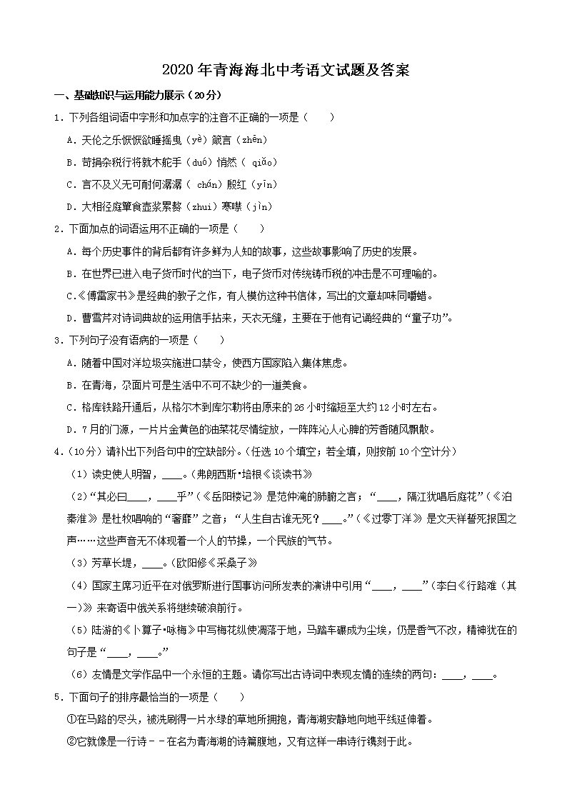 【文档名称】 2020年青海海北中考语文试题及答案(Word版).doc