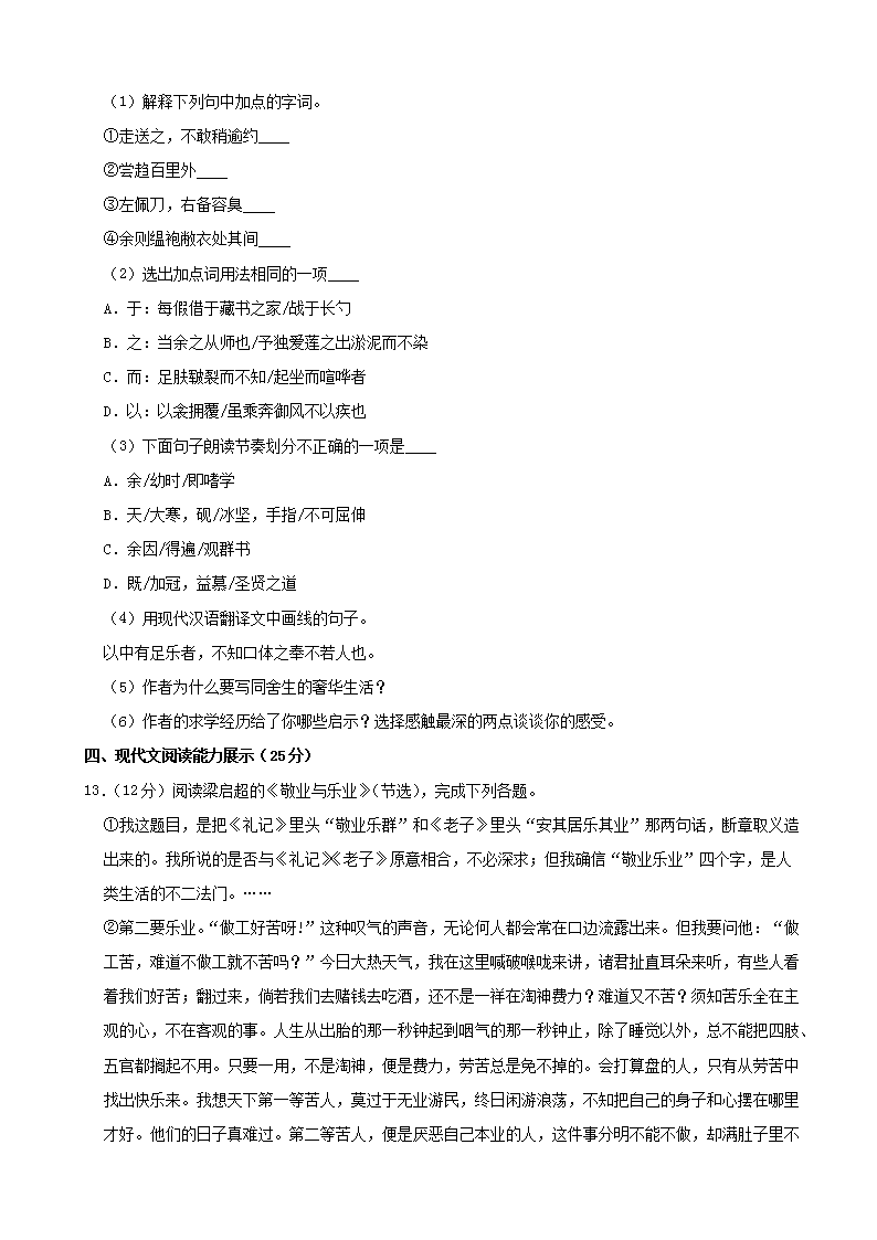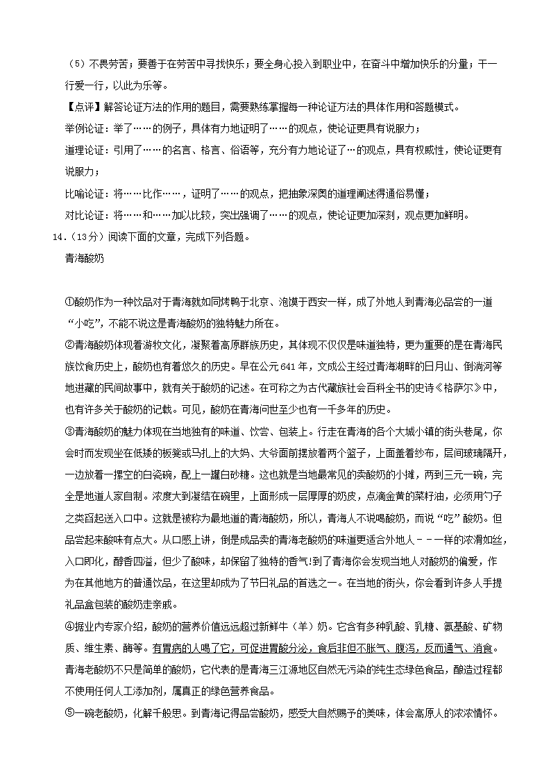 【文档名称】 2020年青海海东中考语文试题及答案(Word版).doc