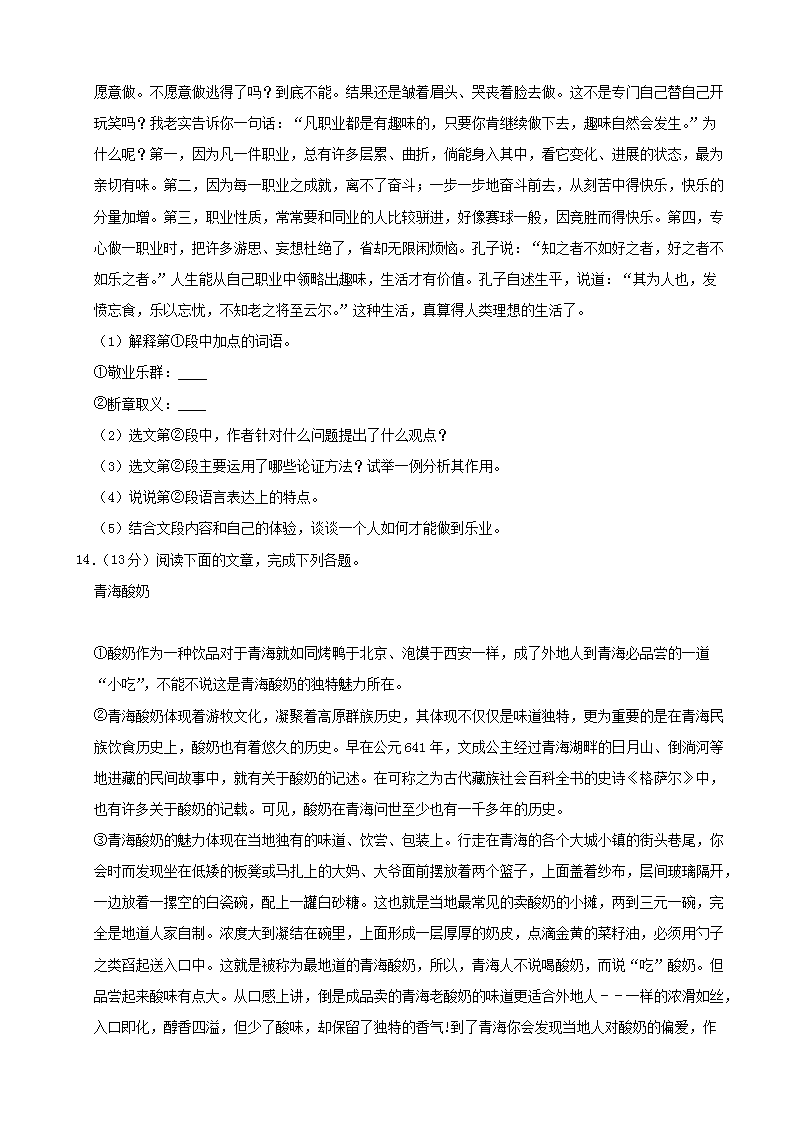 【文档名称】 2020年青海海南中考语文试题及答案(Word版).doc