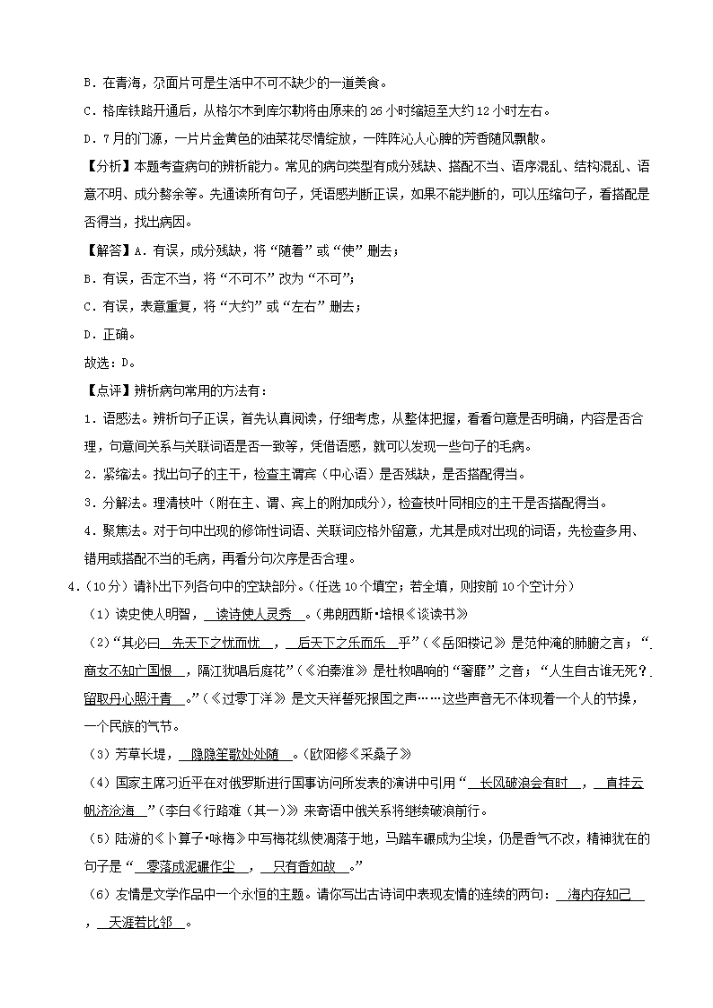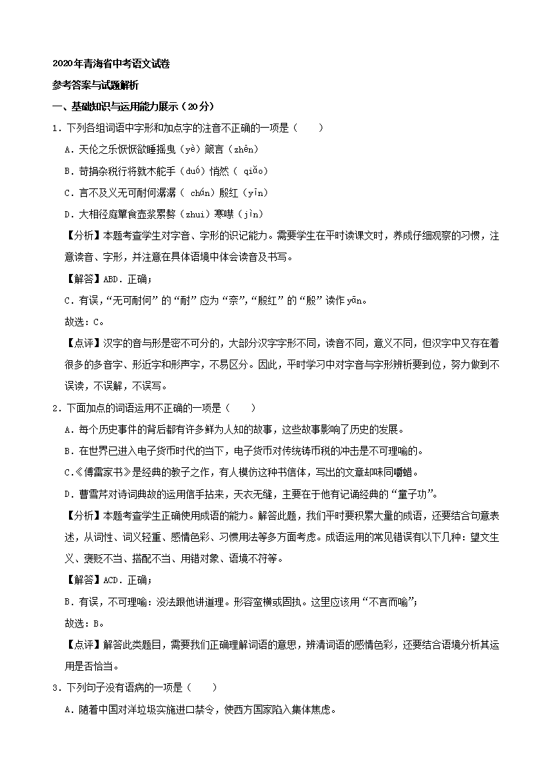 【文档名称】 2020年青海海西中考语文试题及答案(Word版).doc