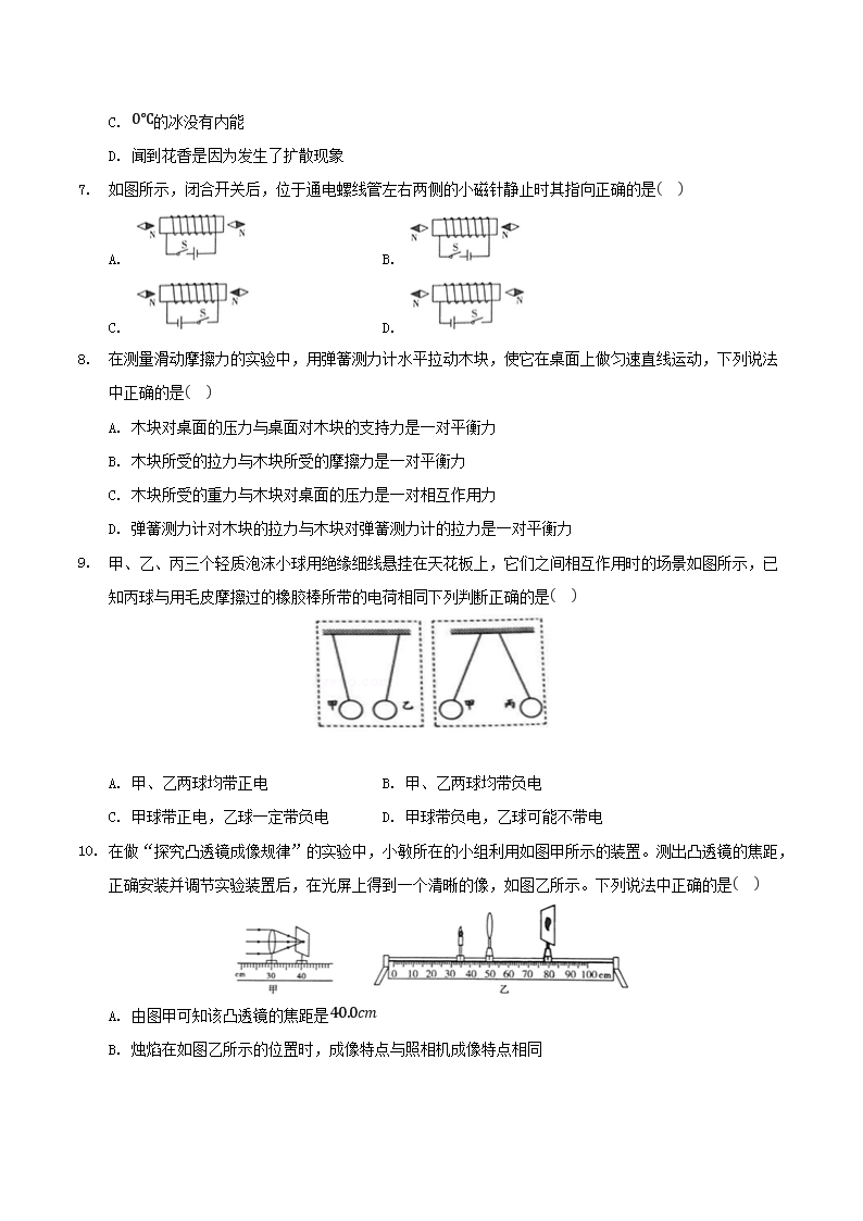 【文档名称】 2020年青海玉树中考物理试题及答案(Word版).doc