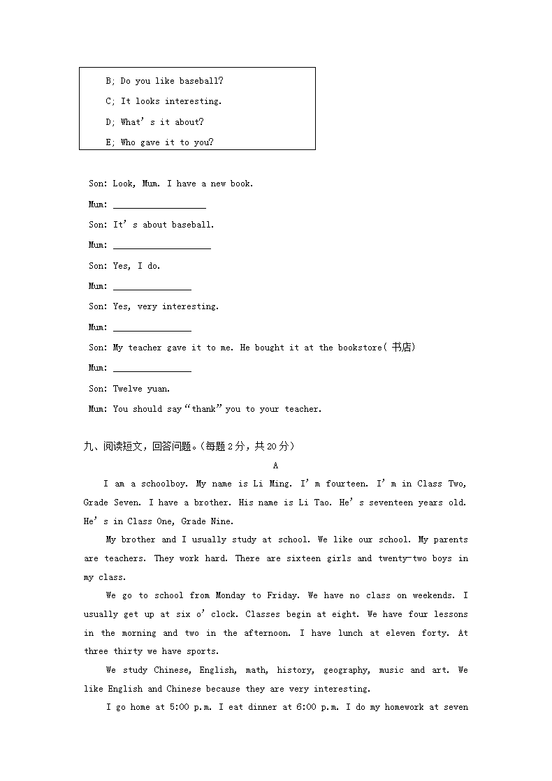 【文档名称】 2014年广东小升初英语考试真题(Word版).doc