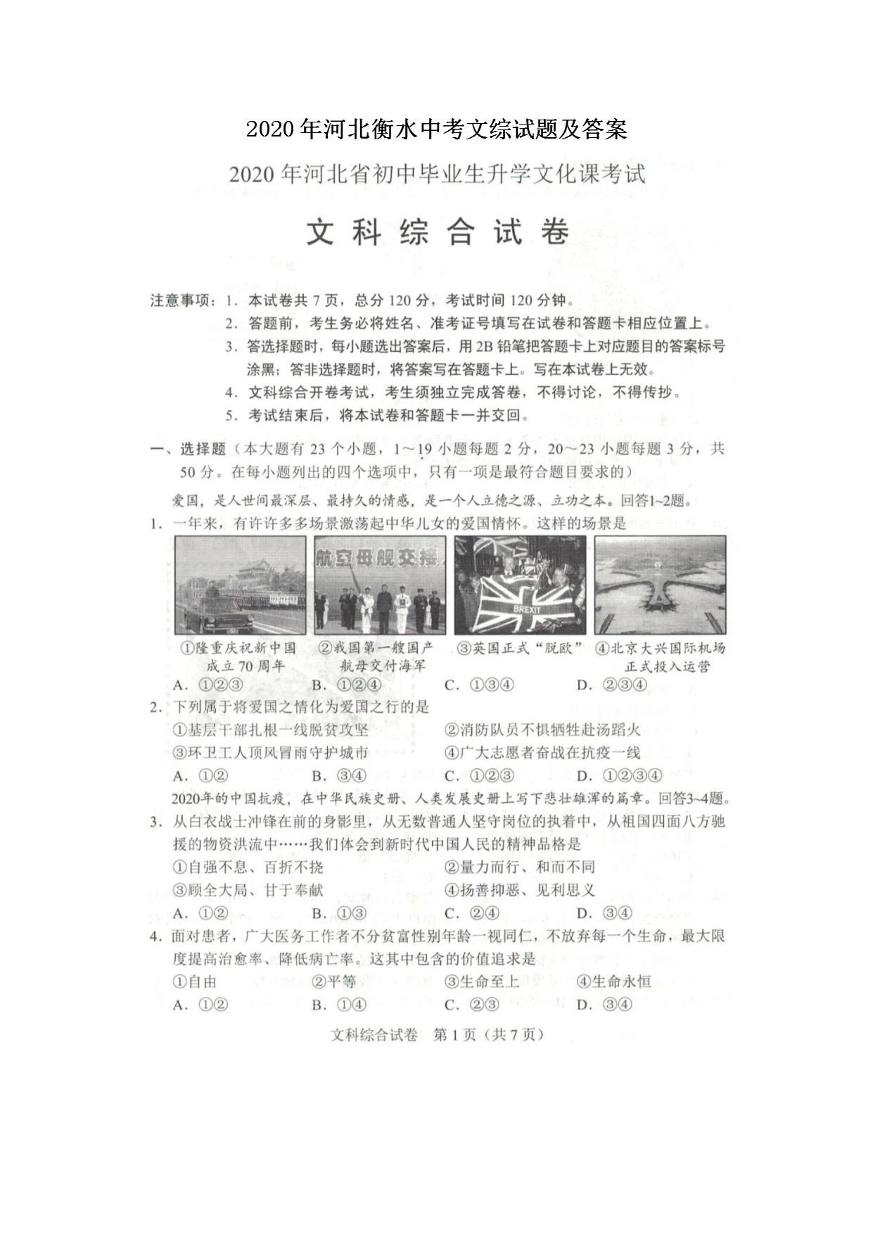 【文档名称】 2020年河北衡水中考文综试题及答案(图片版).doc