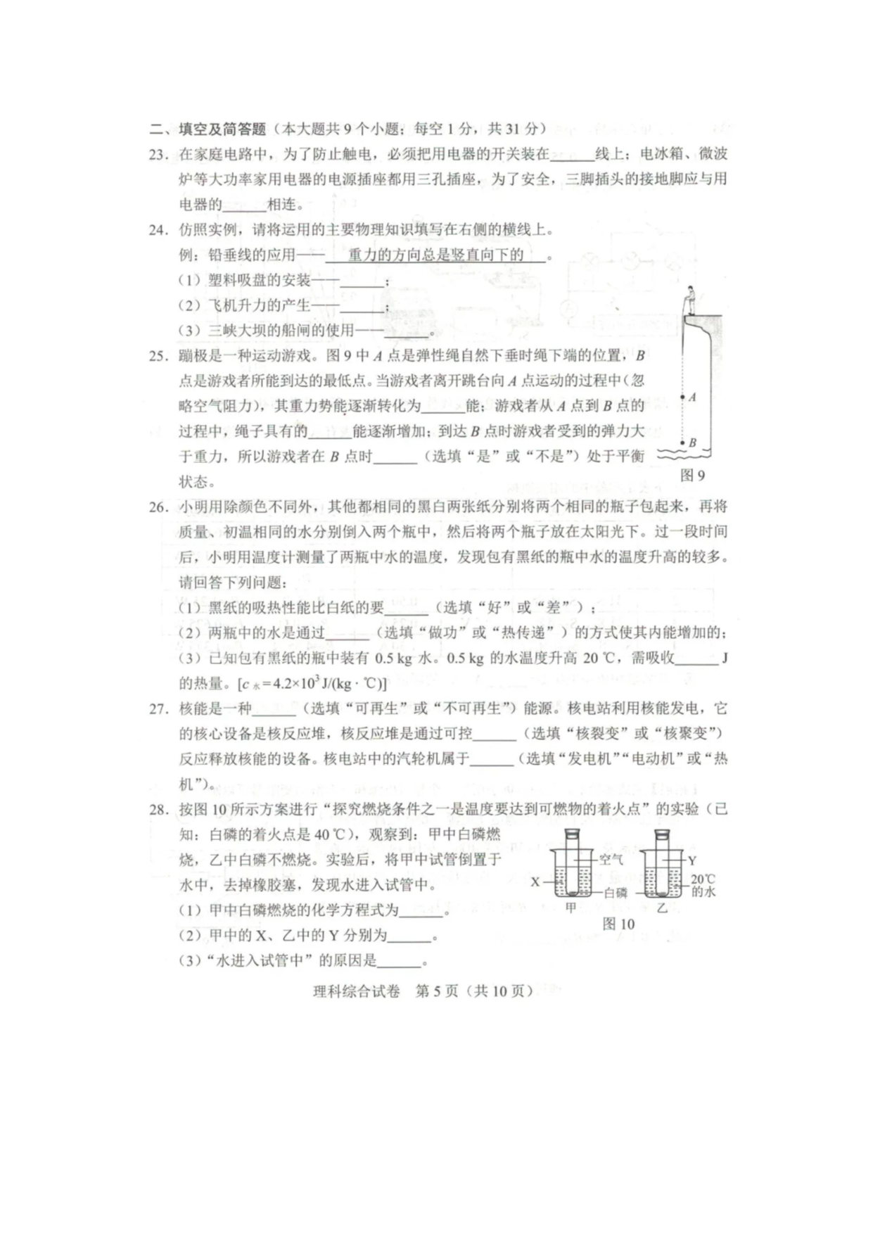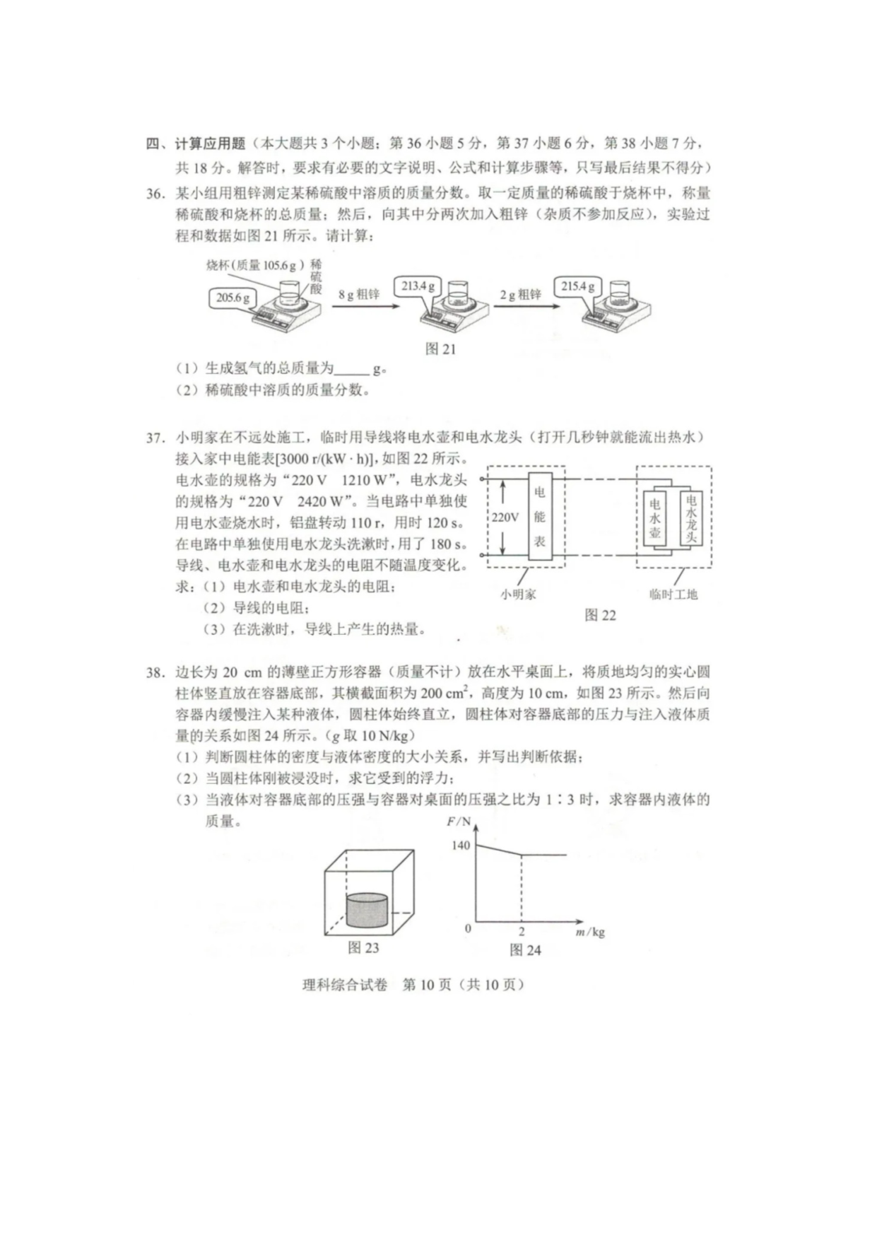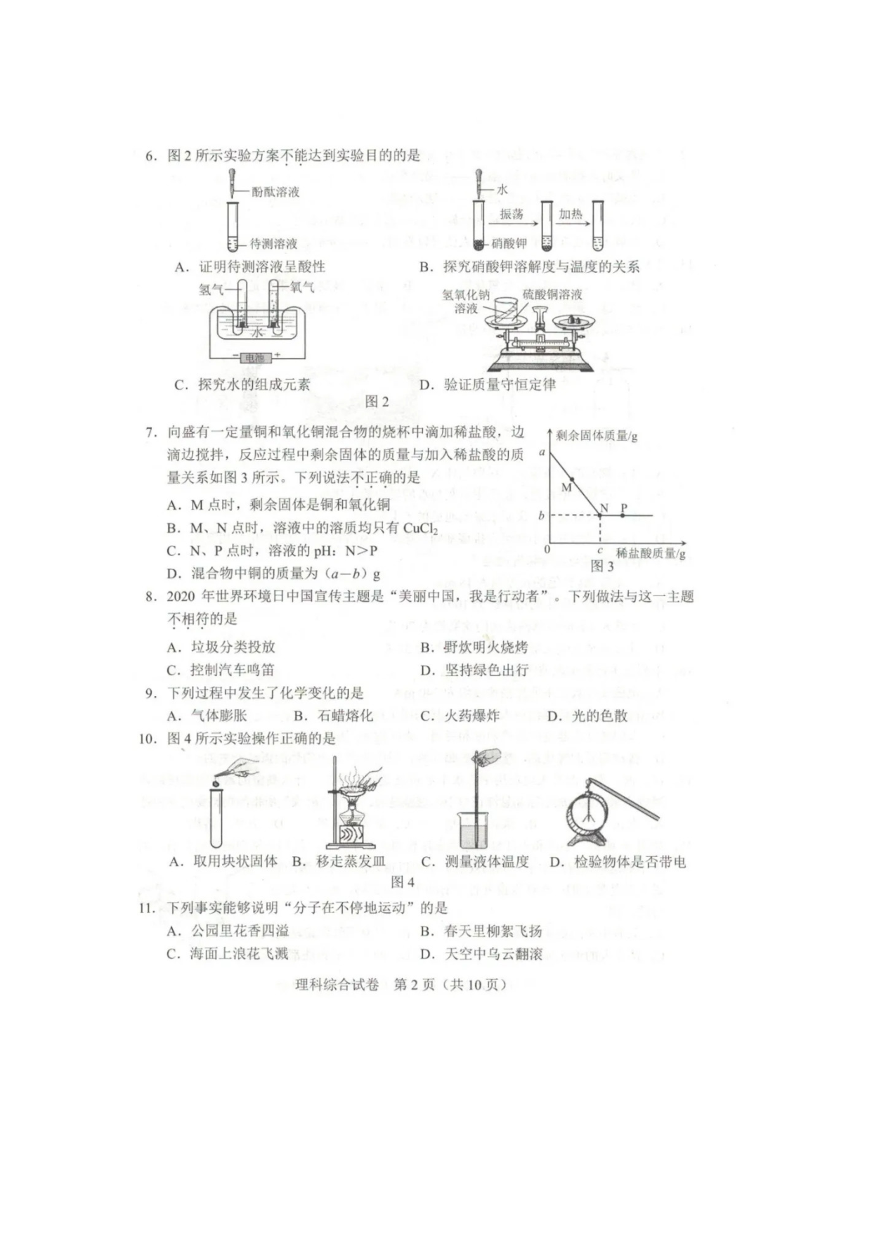 【文档名称】 2020年河北张家口中考理综试题及答案(图片版).doc