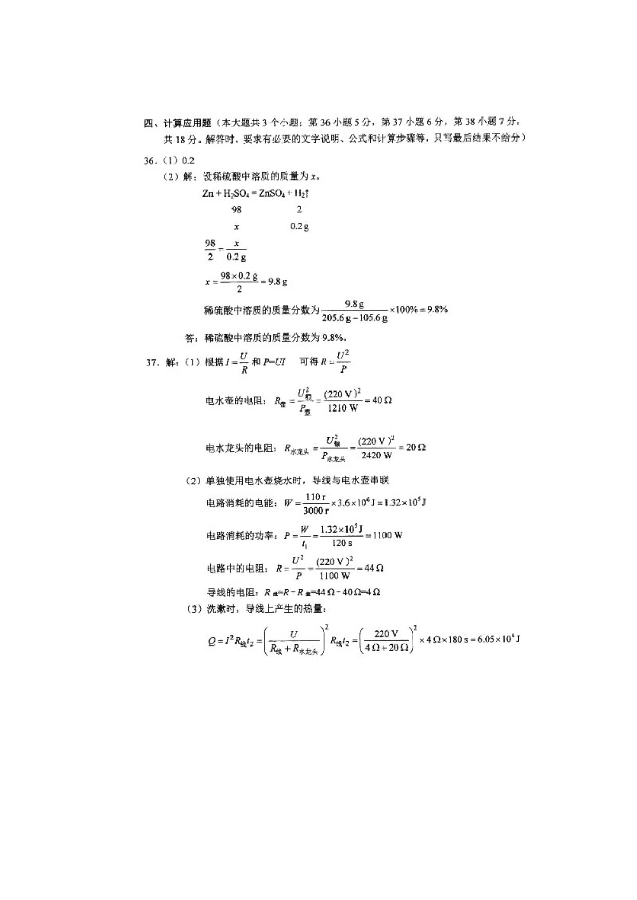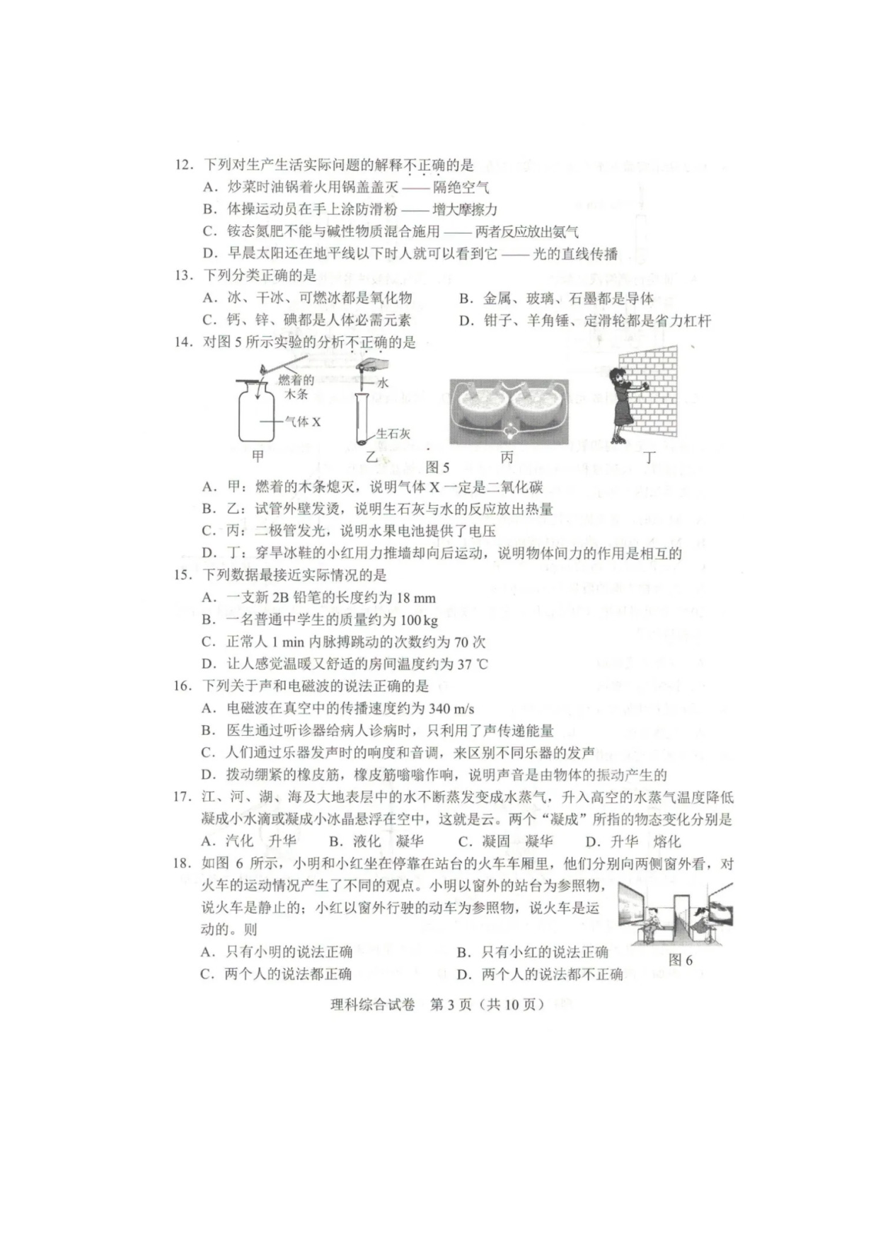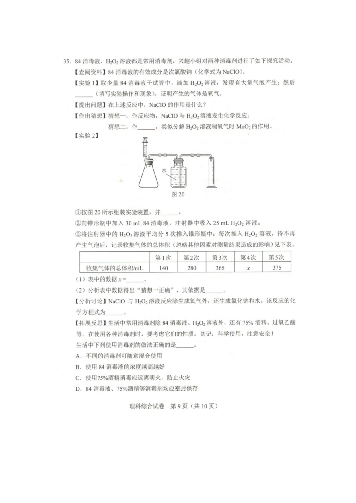【文档名称】 2020年河北张家口中考理综试题及答案(图片版).doc