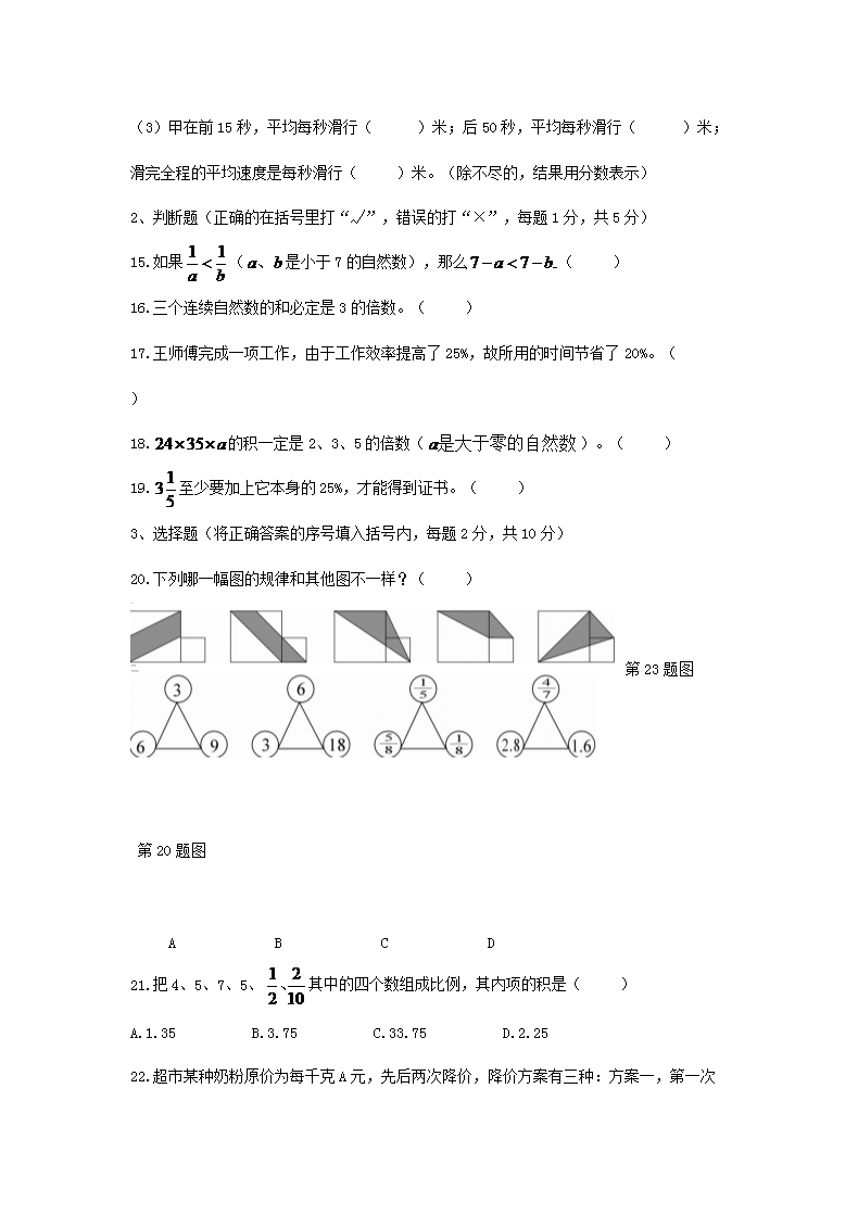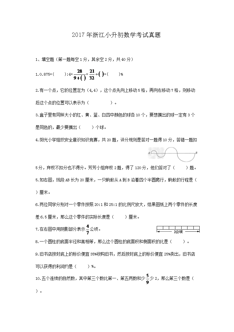【文档名称】 2017年浙江小升初数学考试真题(Word版).doc