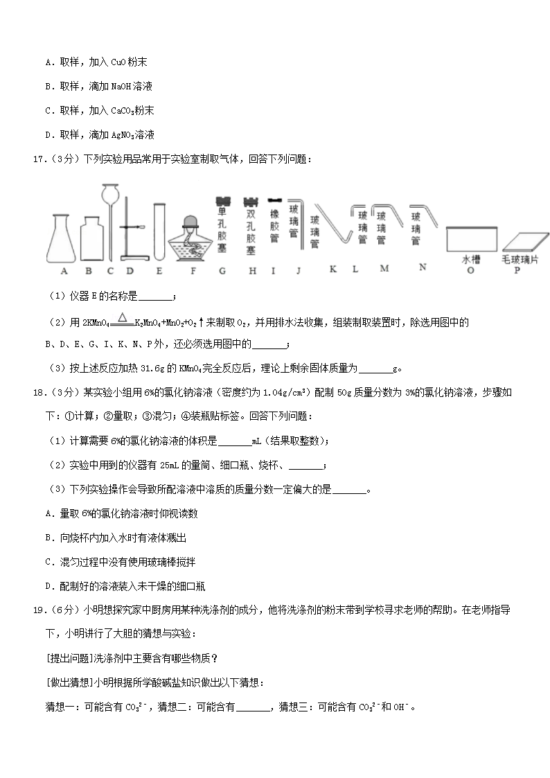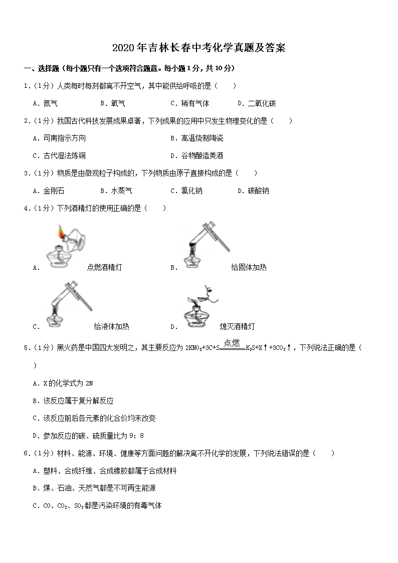 【文档名称】 2020年吉林长春中考化学真题及答案(Word版).doc