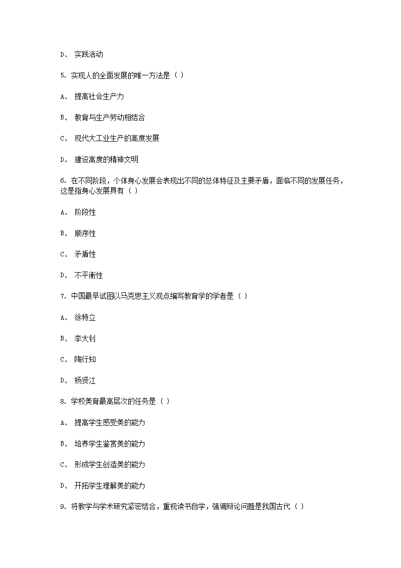 【文档名称】 2011上半年甘肃教师资格中学教育学真题及答案(Word版).doc